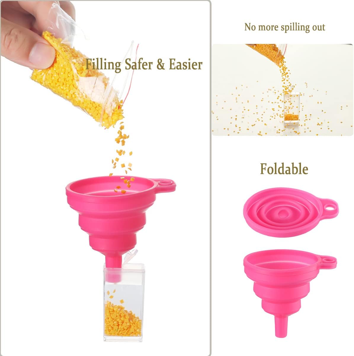 - Practical Diamond Art Tools: We specially selected the most basic tools to help you organize your beads and diamonds. The foldable silicone funnel can avoid spilling diamonds which lets you fill diamonds safer and easier. Comes with 160 plastic transparent jars with lids, so you can label and sort them to perfectly organize all your diamonds.