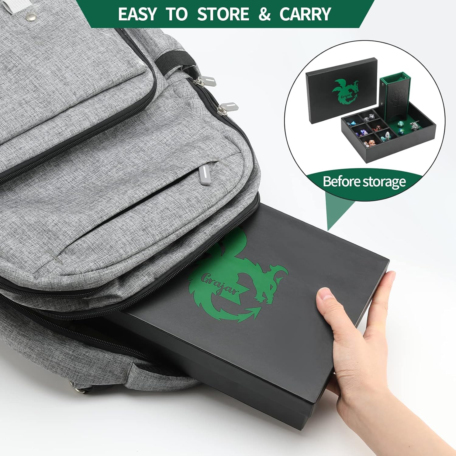3 in 1 Dice Tray with Lid, Portable Dice Box Storage, D&D RPG MTG Table Games (Green)