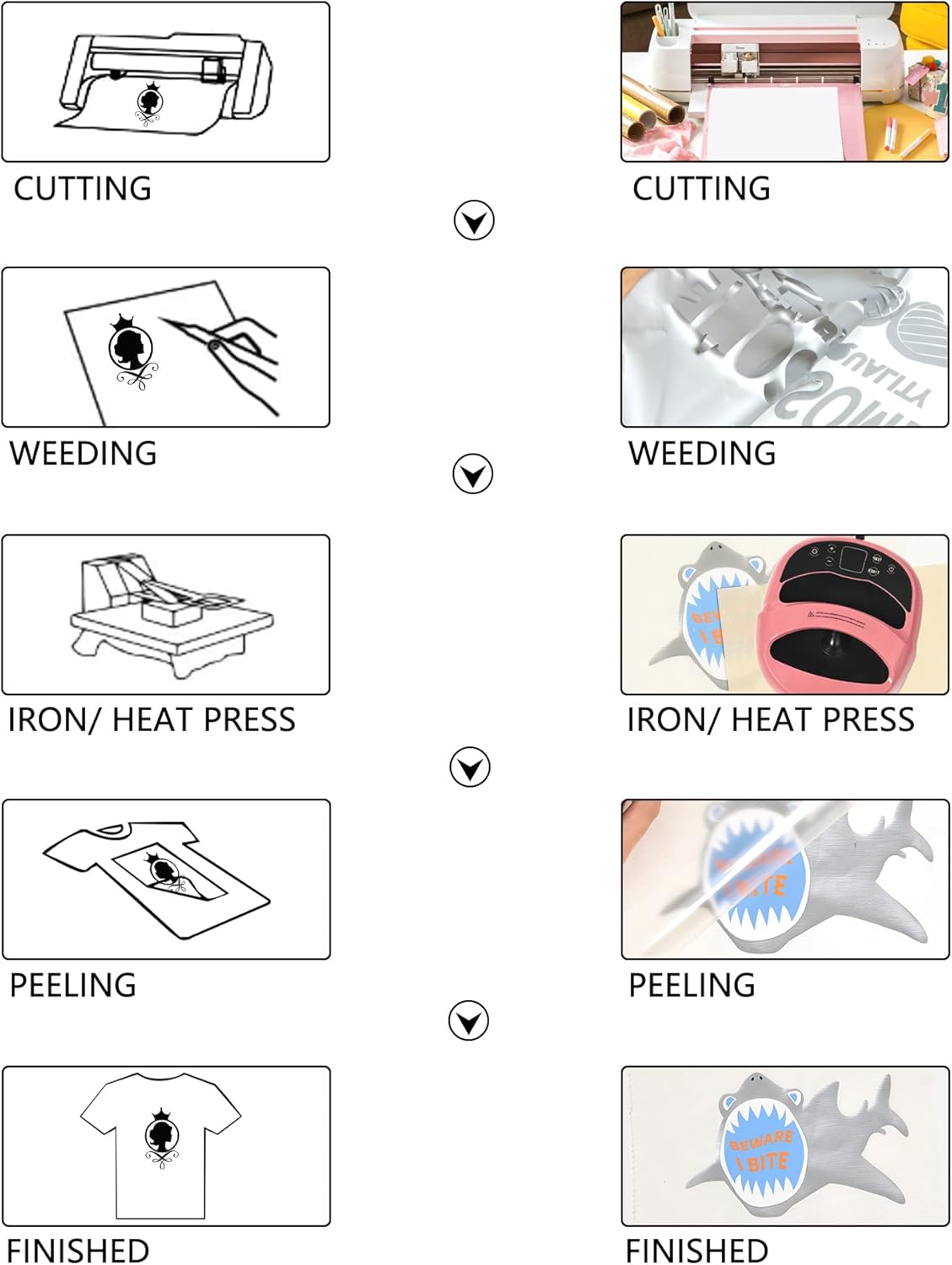 - Smooth, No Flake And Weed Easily: The biggest advantage of htv vinyl is that it doesn't easy to flake off, crack, fade or peel. It boasts of itself smooth and soft material and holds washes after wash, Moreover, cardboard roll maintains the stretchability of original vinyl just like freshly come from factory.