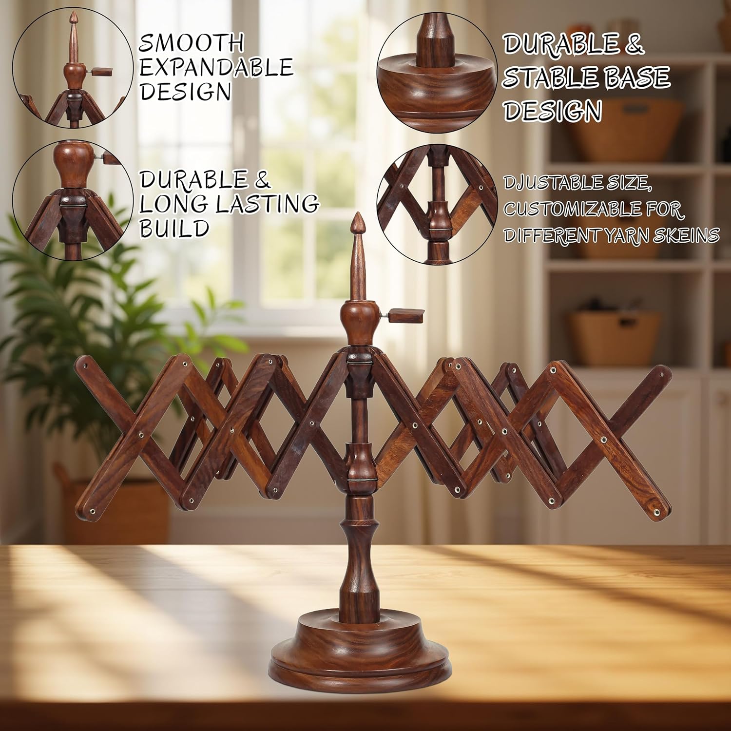 Bhartiya Handicrafts Rosewood Table Top Yarn Swift | Hand Operated Yarn Winder Swift | Yarn Winder for Swift Winding Lines (Design 2)