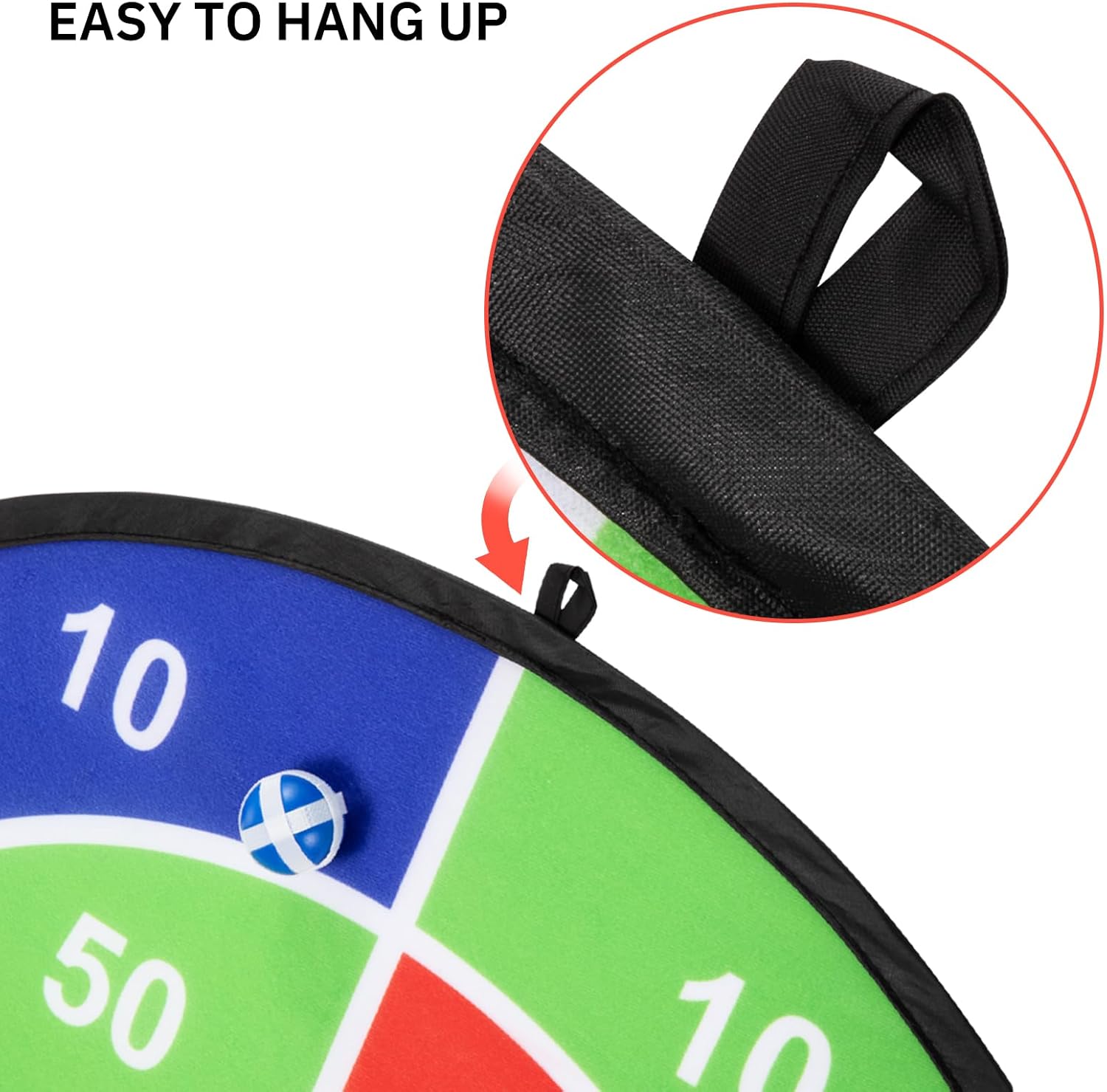 - Foldable Design: This kids dart board kit has foldable and portable design. You can even enjoy it while travelling or camping. You can set it up easily and fold it quickly. There are no sharp parts in sticks bals. Hang the dart board to enjoy the games