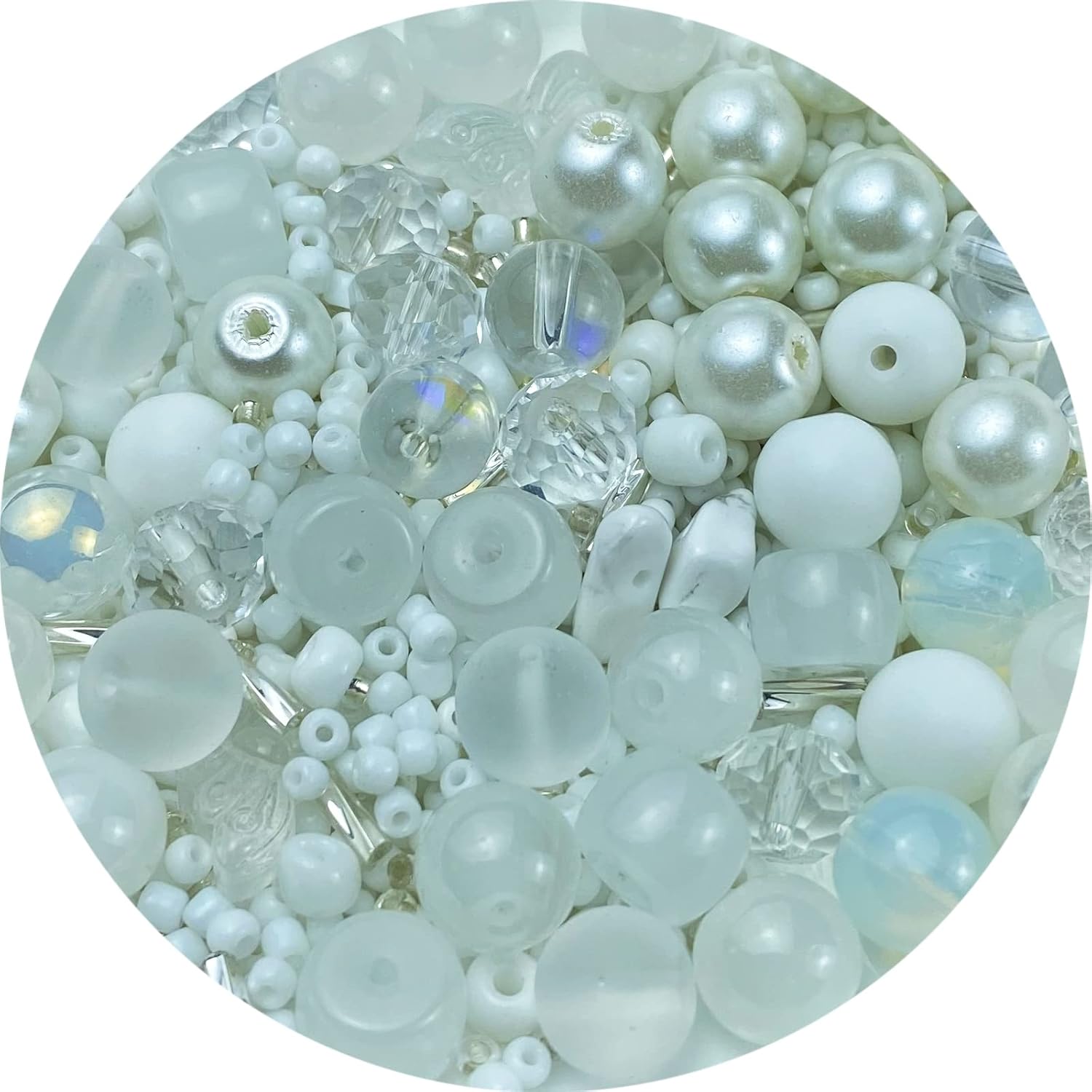 Assorted Glass Resin Beads Multi Size Colors Smooth Cracked Gravel Millet Spacer Beads for Bracelets Necklace Earring DIY Jewelry Making Craft (White Series)