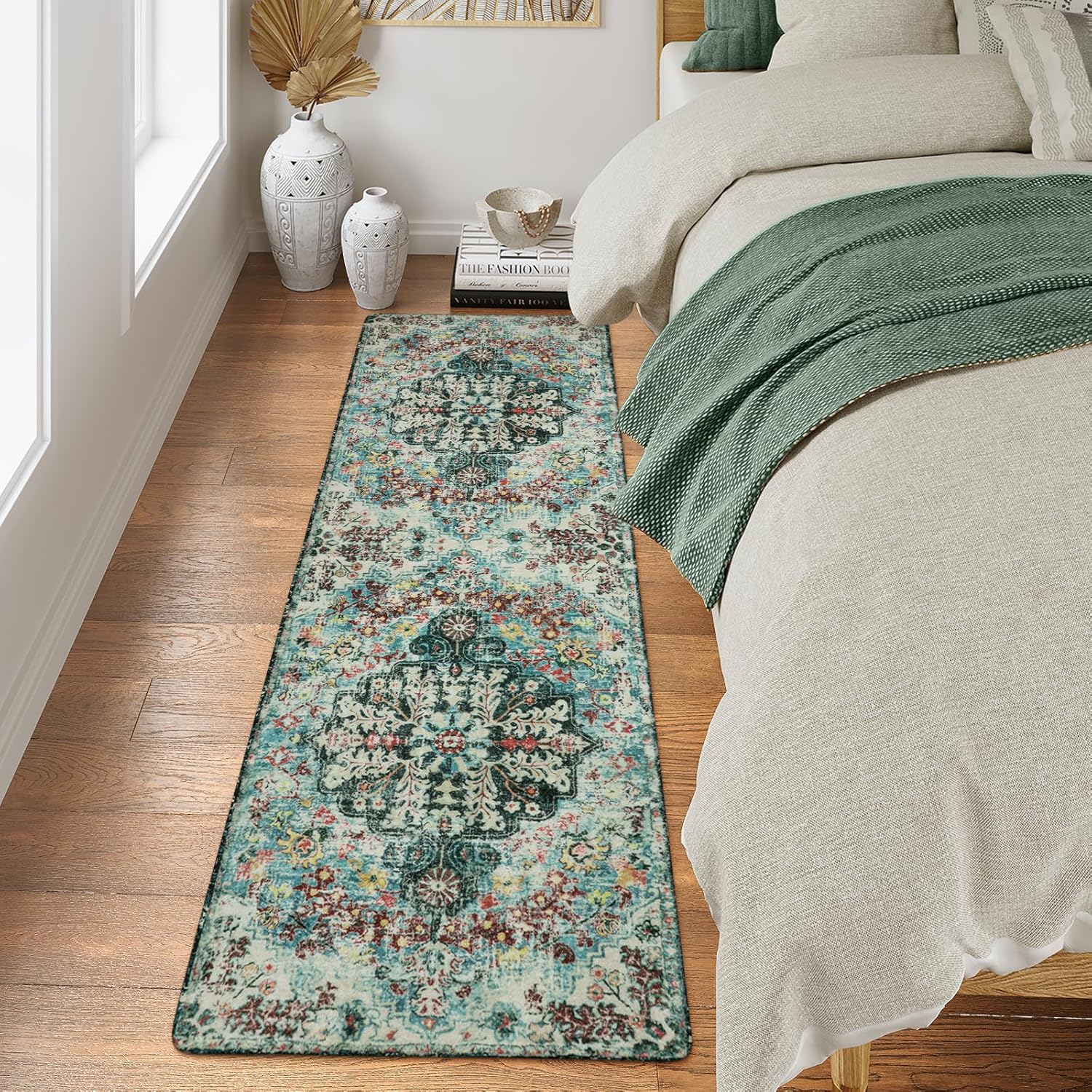 Lahome Bohemian Floral 2x6 Washable Hallway Runner Rug, Non Slip Kitchen Laundry Hallway Rug Runner, Pet Friendly Bathroom Indoor Carpet Runners for RV Camper Entrance Bedroom