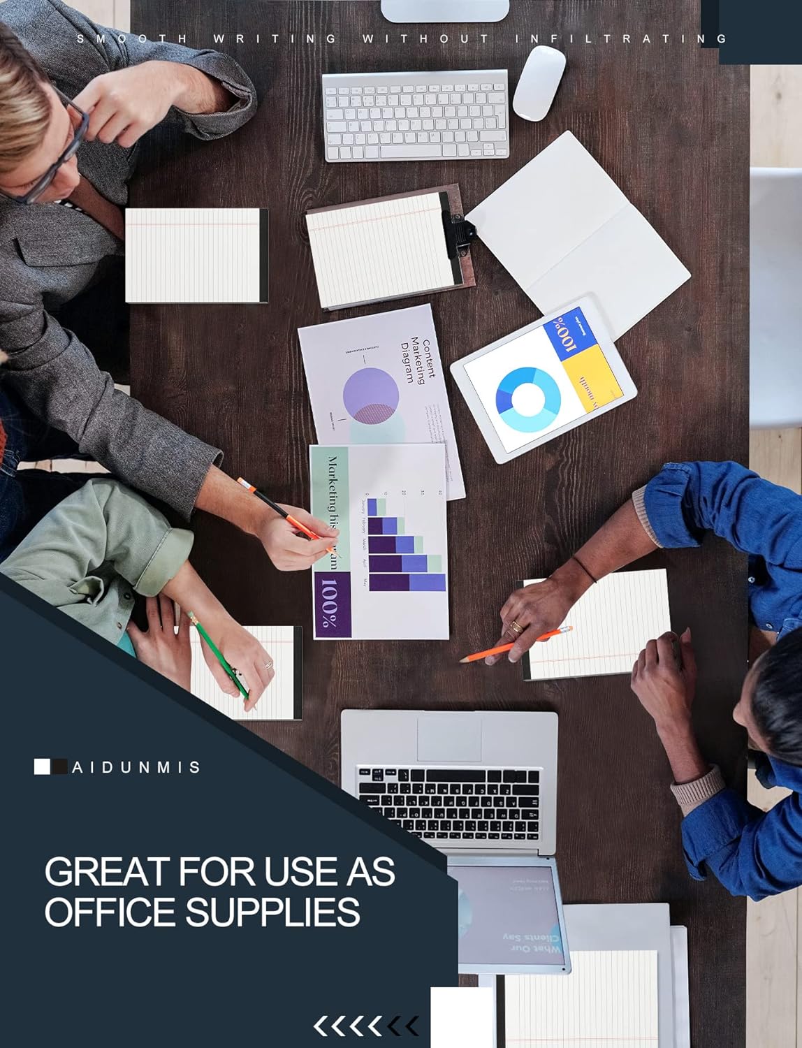 - [ENJOY WRITING AGAIN]: The legal pads 5x8 notepad has black lines and double red margin lines on left, narrow-rule format provides plenty of space for your notes. Notepads 5x8 white smooth, premium-weight paper allows your ballpoints and ink gel pens to glide across the page. Small notepad 5x8 writing stays on the surface and resists ink bleeding and show-through. The small legal pads won't yellow over time and thicker than average legal pad for smooth writing with less ghosting.