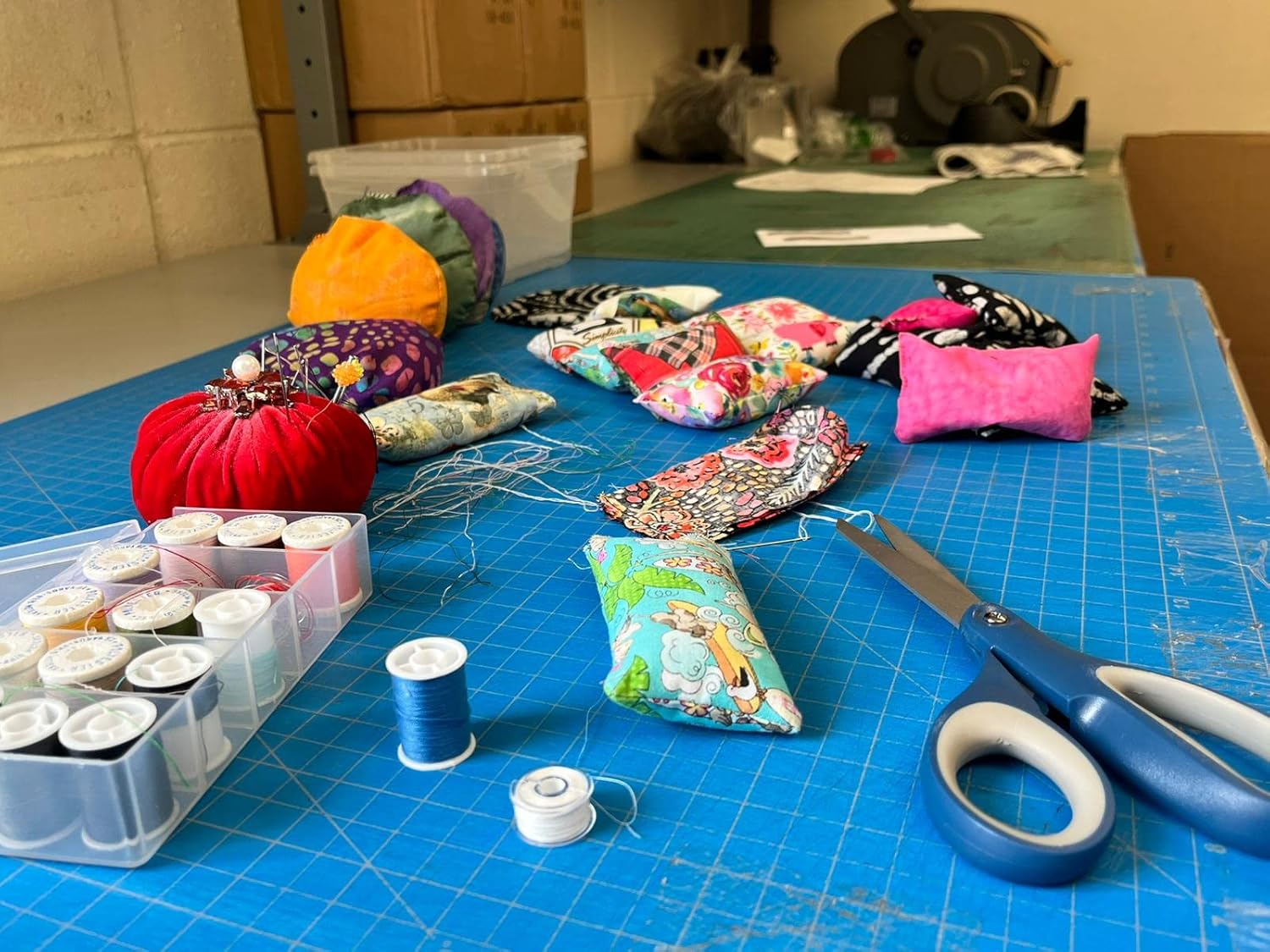 - Our emery sand is fine enough not to dull the top of the needles but big enough not to leak from the pin holes. We use only brand new, high-quality, tightly woven quilting grade cotton fabric to make our pin cushions.