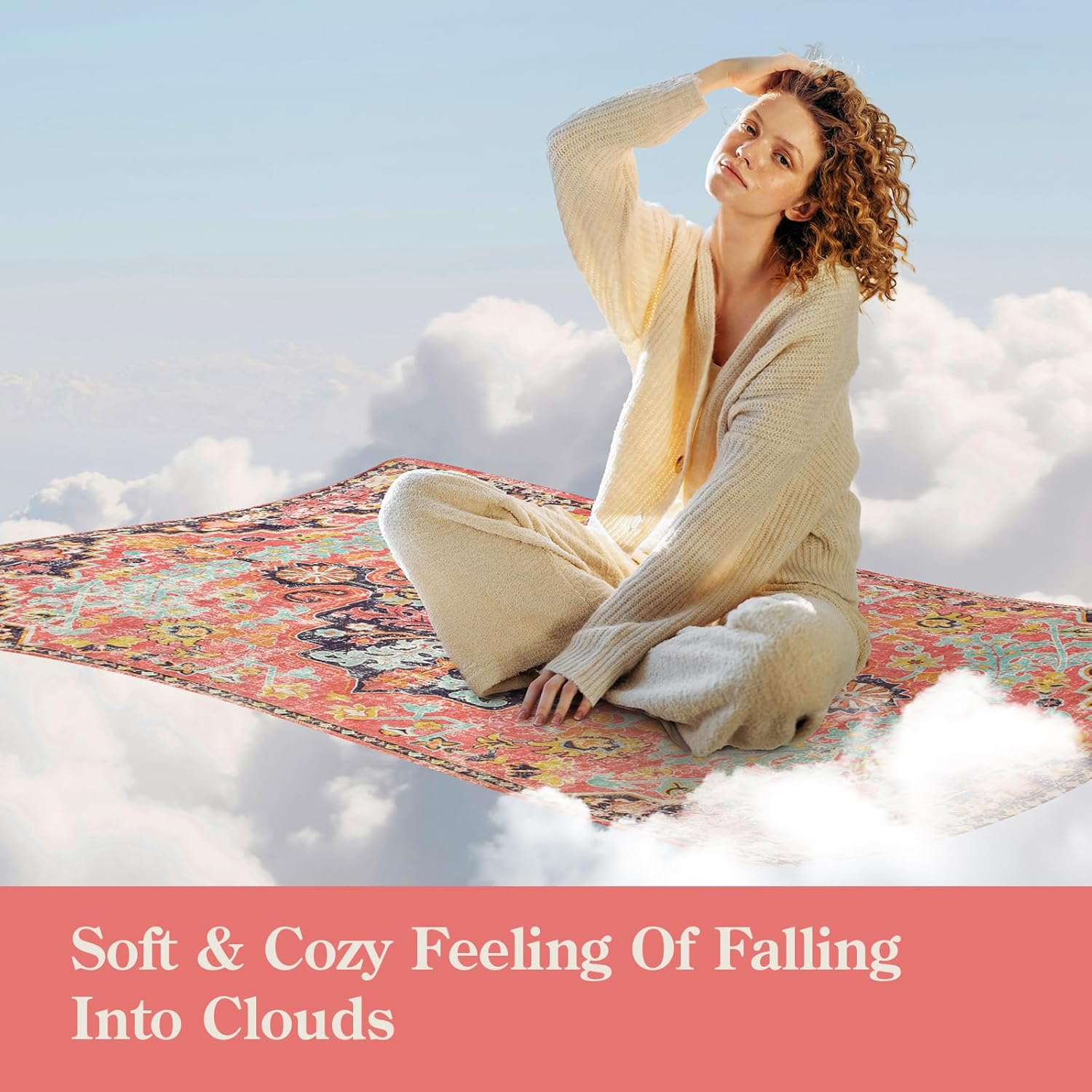 - [Exclusive Design Accent Rug] - This oriental area rug brings a vibrant color scheme and bohemian floral style print to your space. It mainly features a fuchsia, yellow stone, pretty light blue, pink ash brown design patterns, has a mystical quality that feels right out of a fairy tale, with purposeful distressing to add vintage appeal to your space.