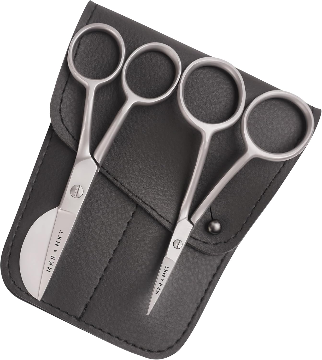 - ✂️ A Hand-Crafted Experience - featuring a set of 2 scissors in quality steel, a smooth and sleek satin silver finish, comfortable ergonomic double bend handles and sharp blades in a protective storage pouch.