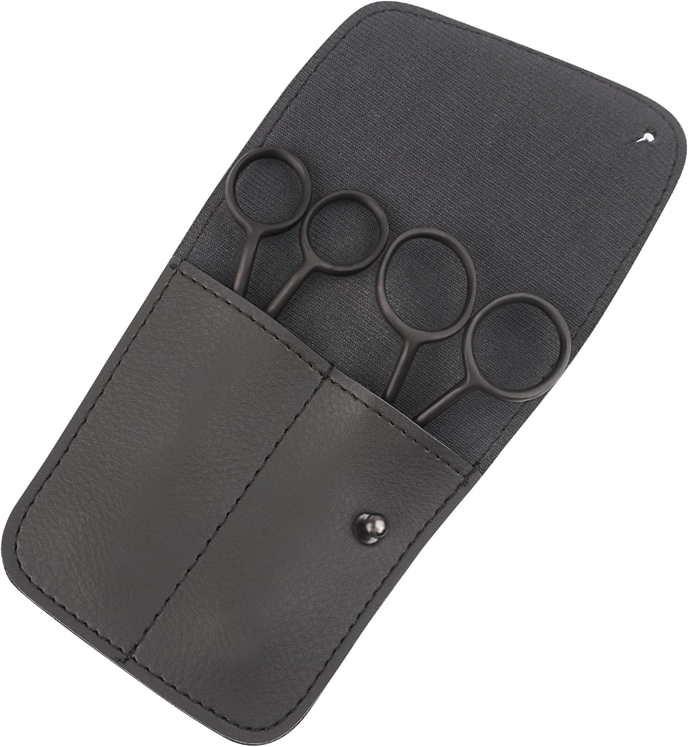- ✂️ A Hand-Crafted Experience - featuring a set of 2 scissors in quality steel, a smooth and sleek satin black finish, comfortable ergonomic double bend handles and sharp blades in a protective storage pouch.