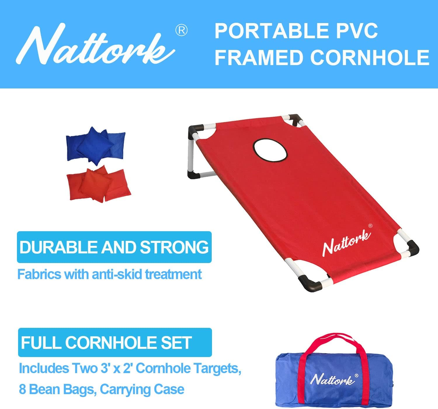- 【LIGHT WEIGHT AND PORTABLE】 With a weight of 2 kg and a length of 18inch*11inch*4inch after folding, this Corn Hole Boards are more lightweight and portable than other Cornhole Game set in the market. A handy and funny Bean Bag Toss Game in indoor, outdoor and travelling activities.