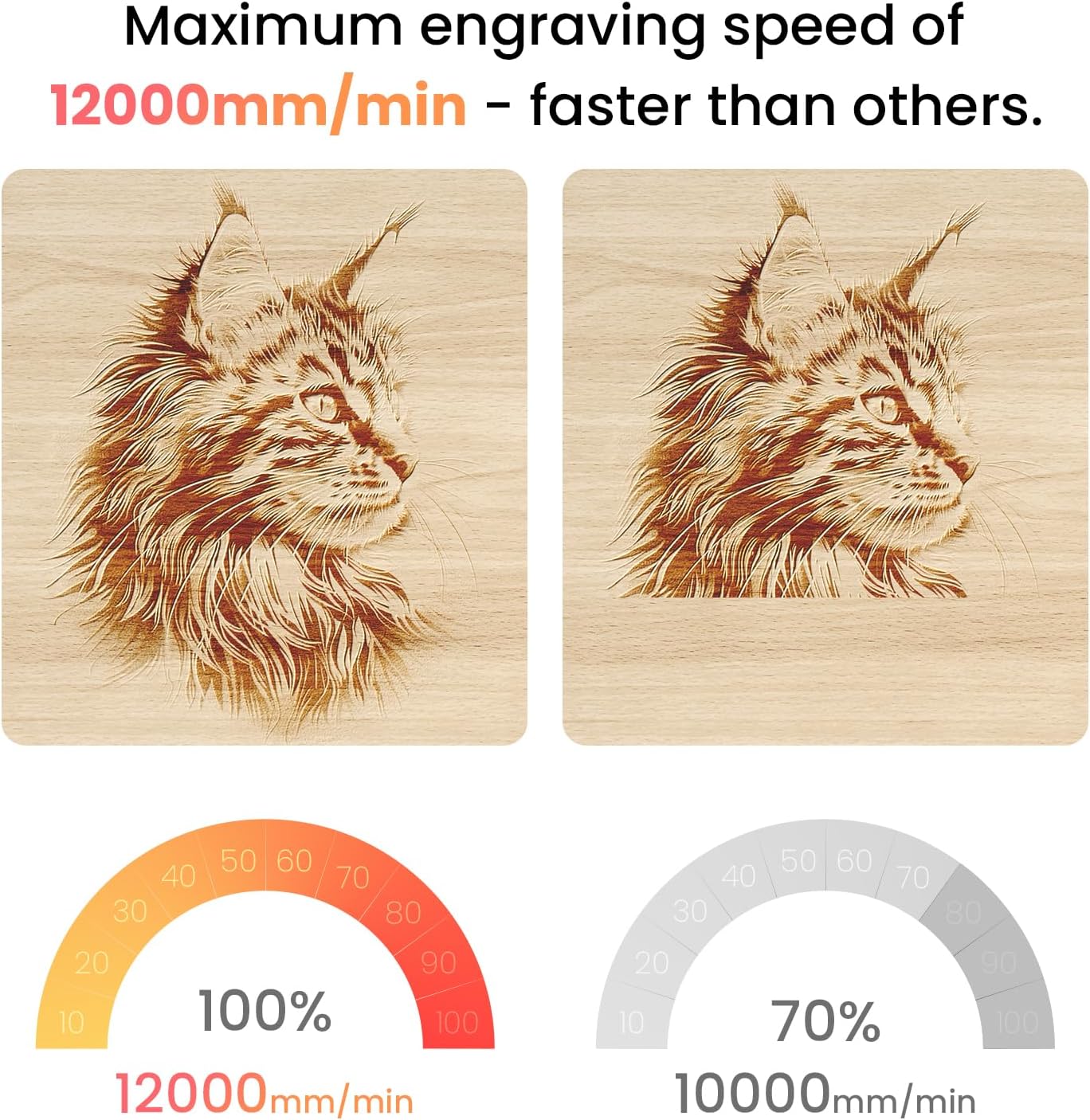 - High-Speed 5.5W Laser Engraving – Powered by a 32-bit motherboard with speeds up to 12000mm/min, 20% faster than similar models for smoother, more precise engraving and cutting.