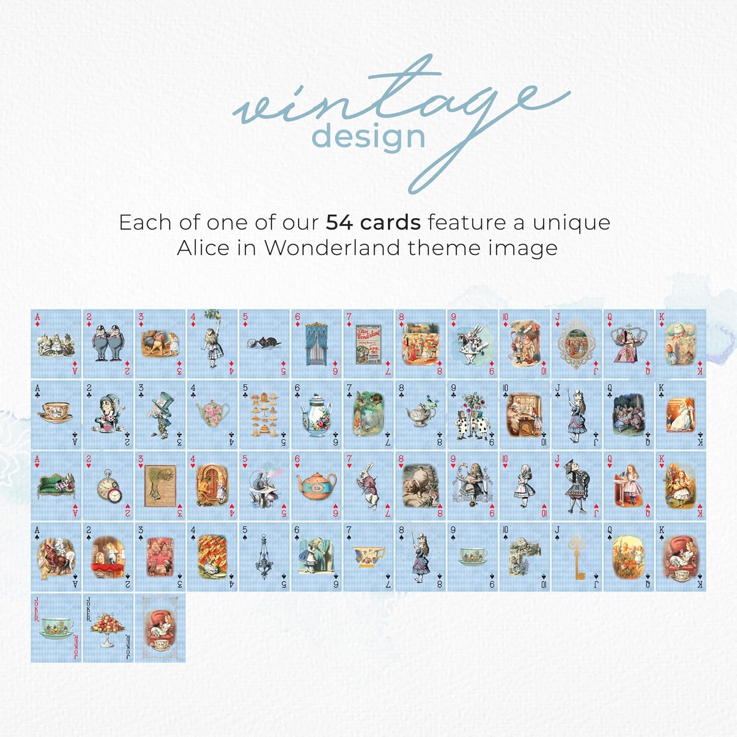- Charming Gift & Collector’s Set: A unique keepsake for Alice Adventures in Wonderland fans, card game lovers, and creative crafters. This playing card deck with washi tape set makes a thoughtful gift for birthdays, holidays, party favors, or as a collector’s treasure.