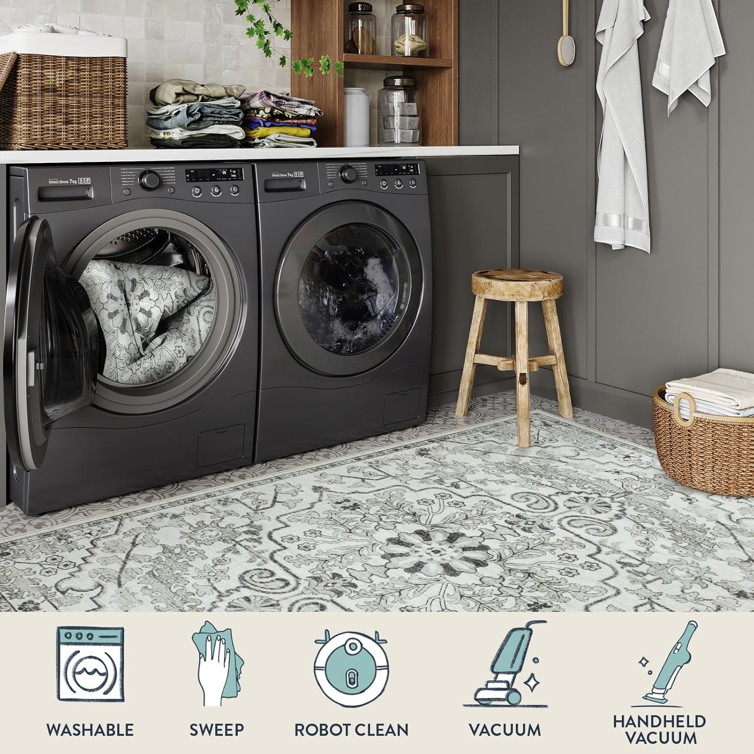 - [Machine Washable Rug] - Offering endless convenience for every lifestyle, our mats are safe in the washing machine. Also for daily cleaning with broom, or wipe. Due to soft surface, press the corners and then use a gentle way to vacuum to prevent the vacuum cleaner be sucked.