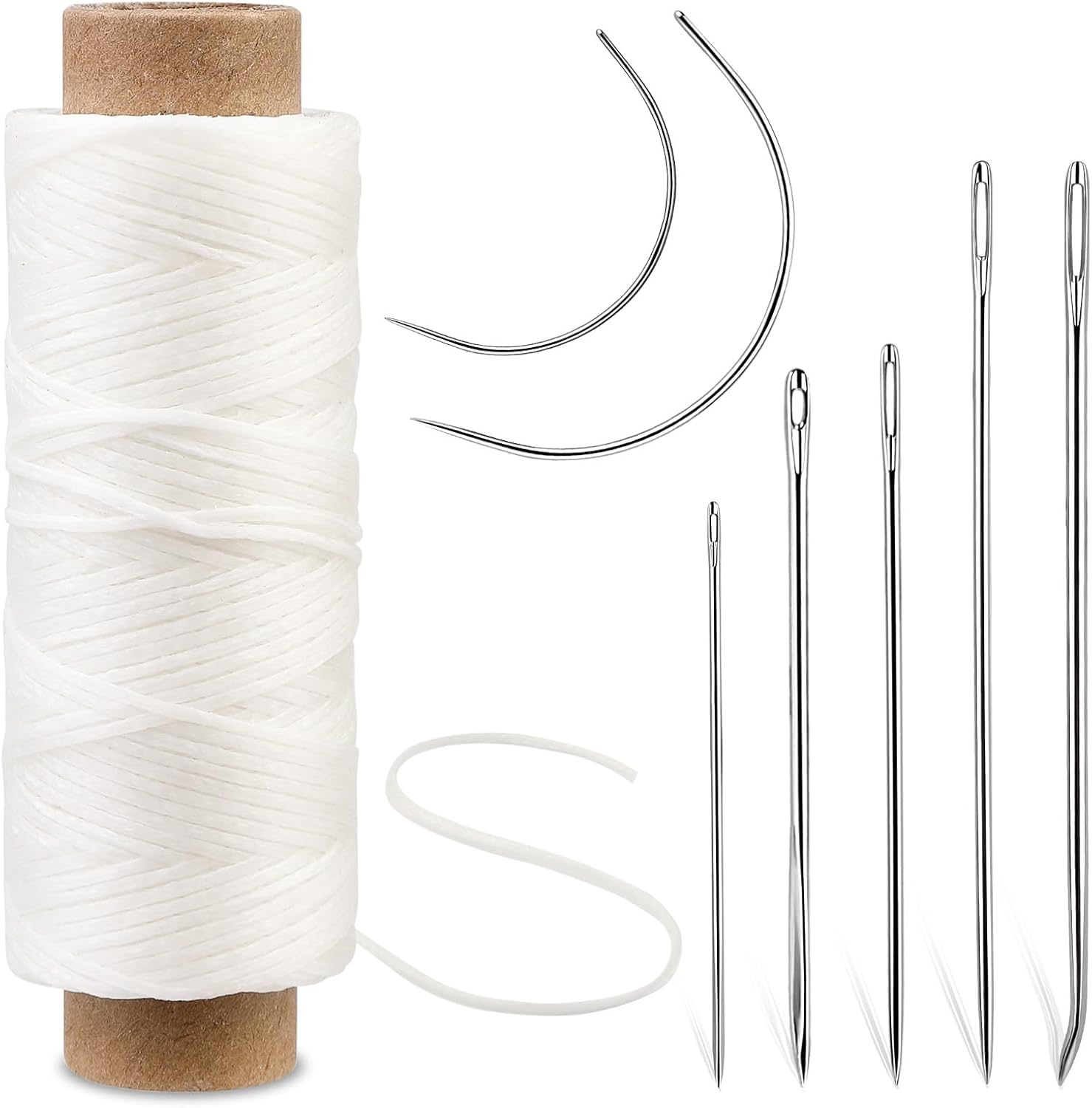 Ftyiwu Waxed Thread 55 Yards, Leather Sewing Waxed Thread with Hand Sewing Needles for Home Upholstery Carpet Leather Canvas Repair and Sewing (Original White)
