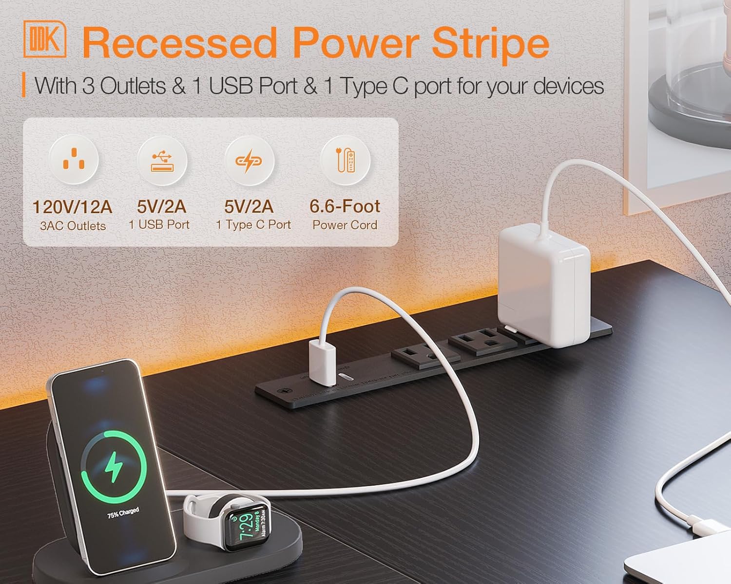 - ăPower Outlets & Charging Portsă ODK L shaped computer desk is equipped with 3 Power outlets & 1 USB charging port & 1 Type-C port for electronic devices, you can easily and conveniently charge your smart phone, gaming gear or Bluetooth devices when you are working or playing games.
