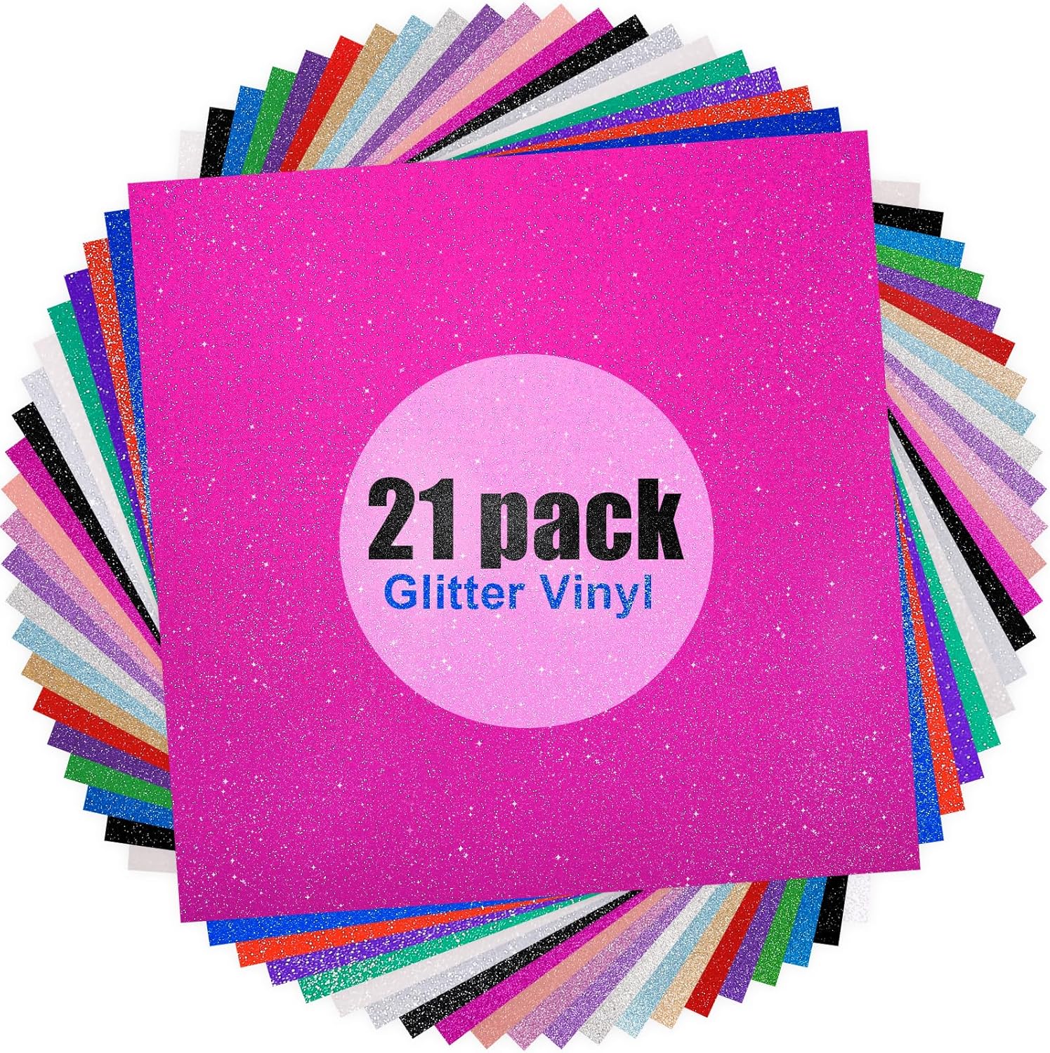- 【GLITTER VINYL / SHIMMER VINYL】This is a vinyl bundle of matte glitter vinyl and glossy glitter vinyl, 21 vinyls in all, all shiny vinyls.If you like pure shimmer vinyl, this permanent vinyl bundle will fit your bill.