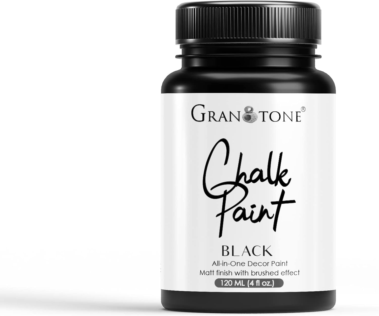 GRANOTONE Eco-Friendly Chalk Paint for Furniture, Home Decor, and Crafts | All in One Paint Solution | No Wax Required, 120ml (BLACK)