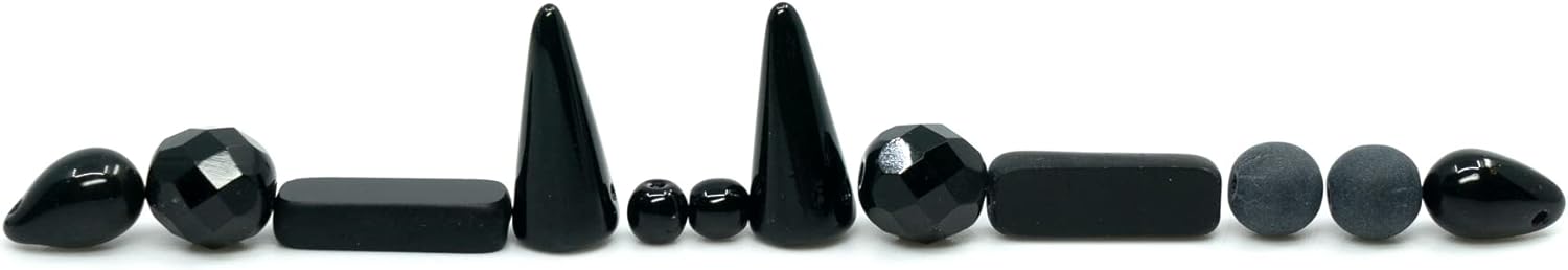 - ⭕️ COLOR ► Opaque Black & Matted Black mix with round, faceted, table-cut and spike beads for stylish monochorme design
