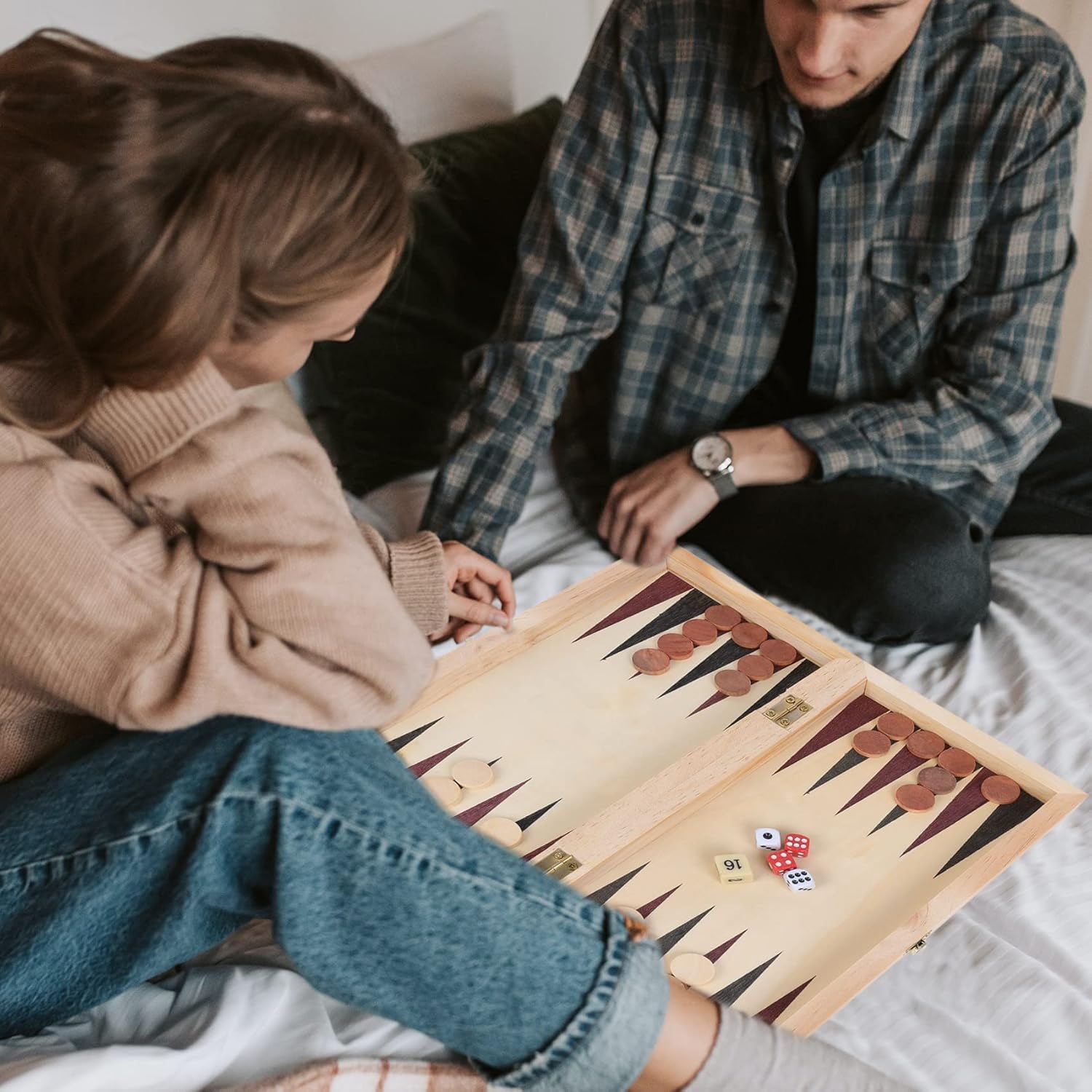 - 【COMPLETE SET, GREAT GIFT IDEA】Includes 32 chessmen, 30 backgammon/checker pieces, 2 pairs of dice, and a doubling cube - everything you need to play! This chess board set integrates chess, backgammon and checkers, which greatly improves the playability of the game. Our set is perfect for kids and adults alike, and makes a great gift for birthdays, holidays, or any occasion.