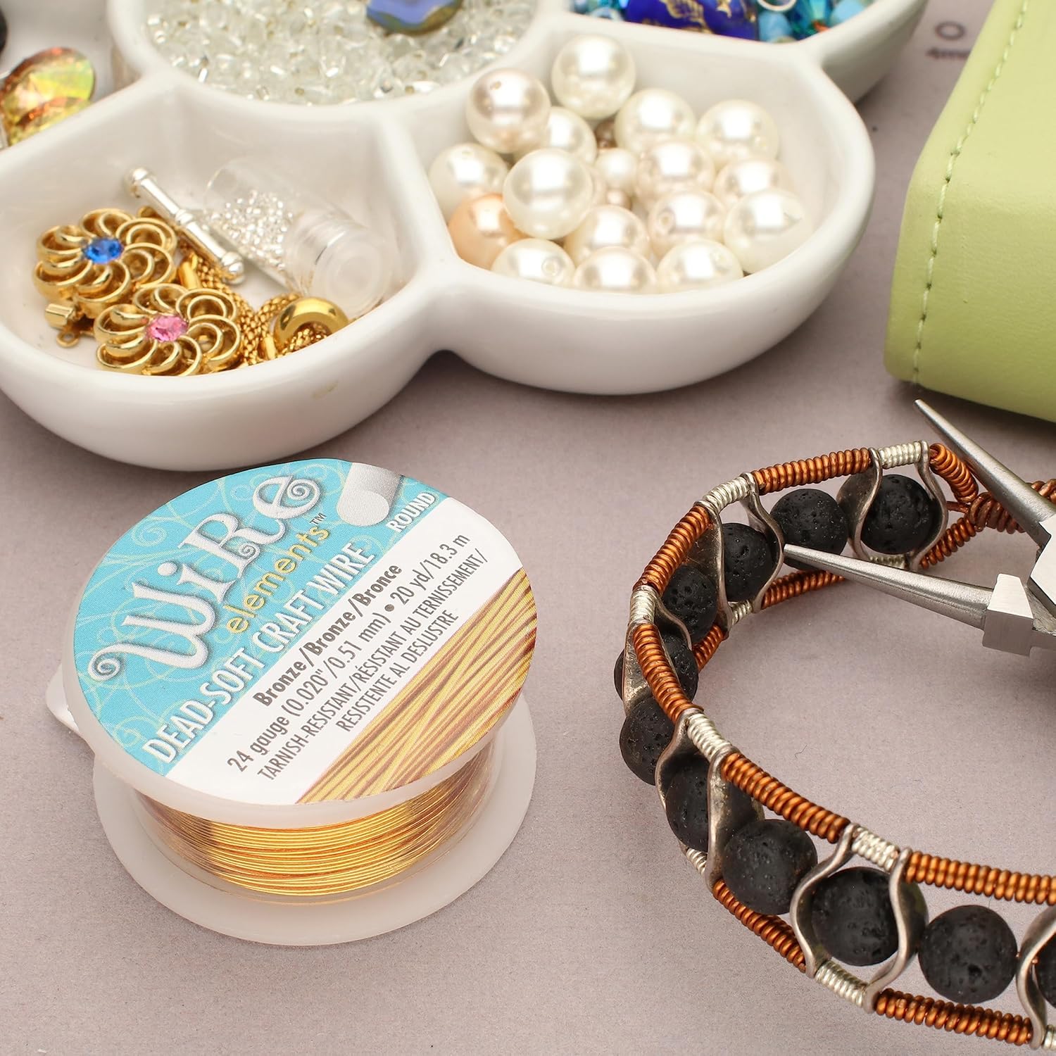 The Beadsmith Wire Elements Craft Wire – Tarnish Resistant, Soft Temper, Round, Bronze Color – 0.51mm, 24 Gauge, 20 Yard Spool – Jewelry Making, Wire Wrapping, Floral, & Other DIY Crafts