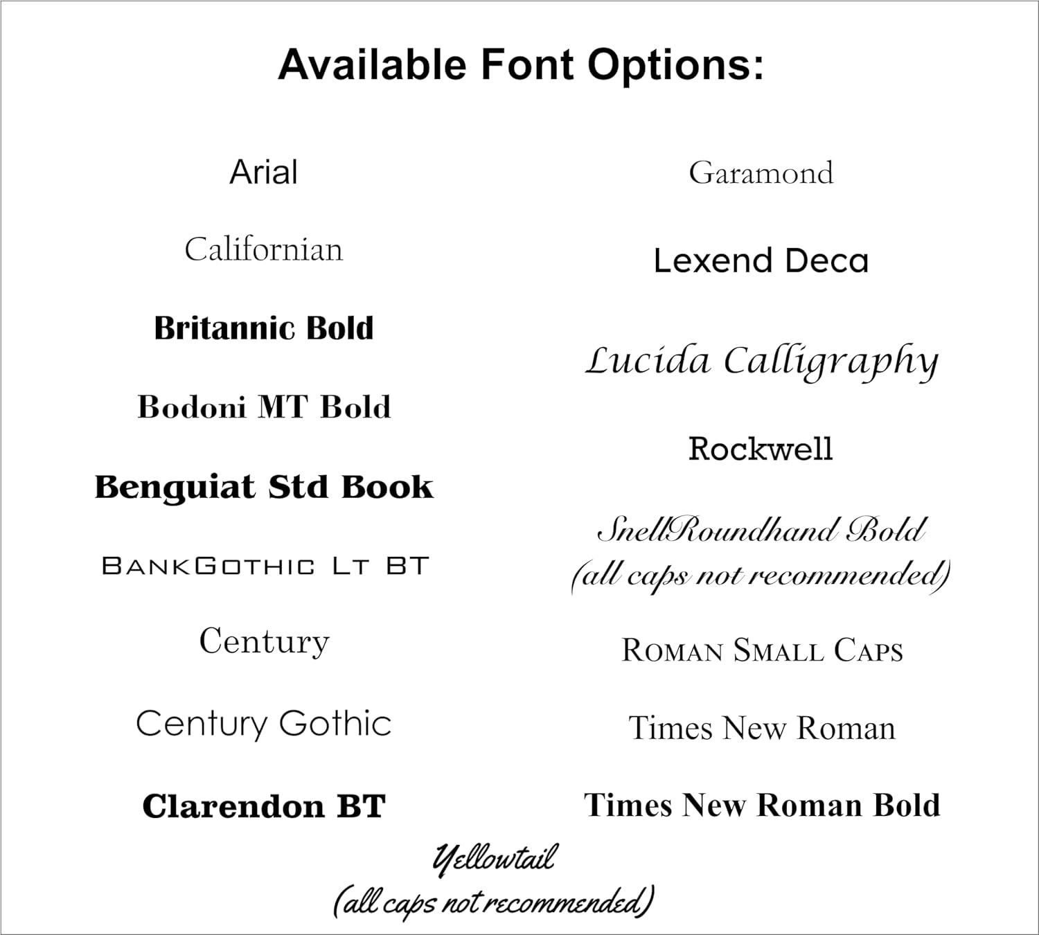 - All text will be centered. If you only need two lines of text, use lines 1 and 2 and we will center all text.