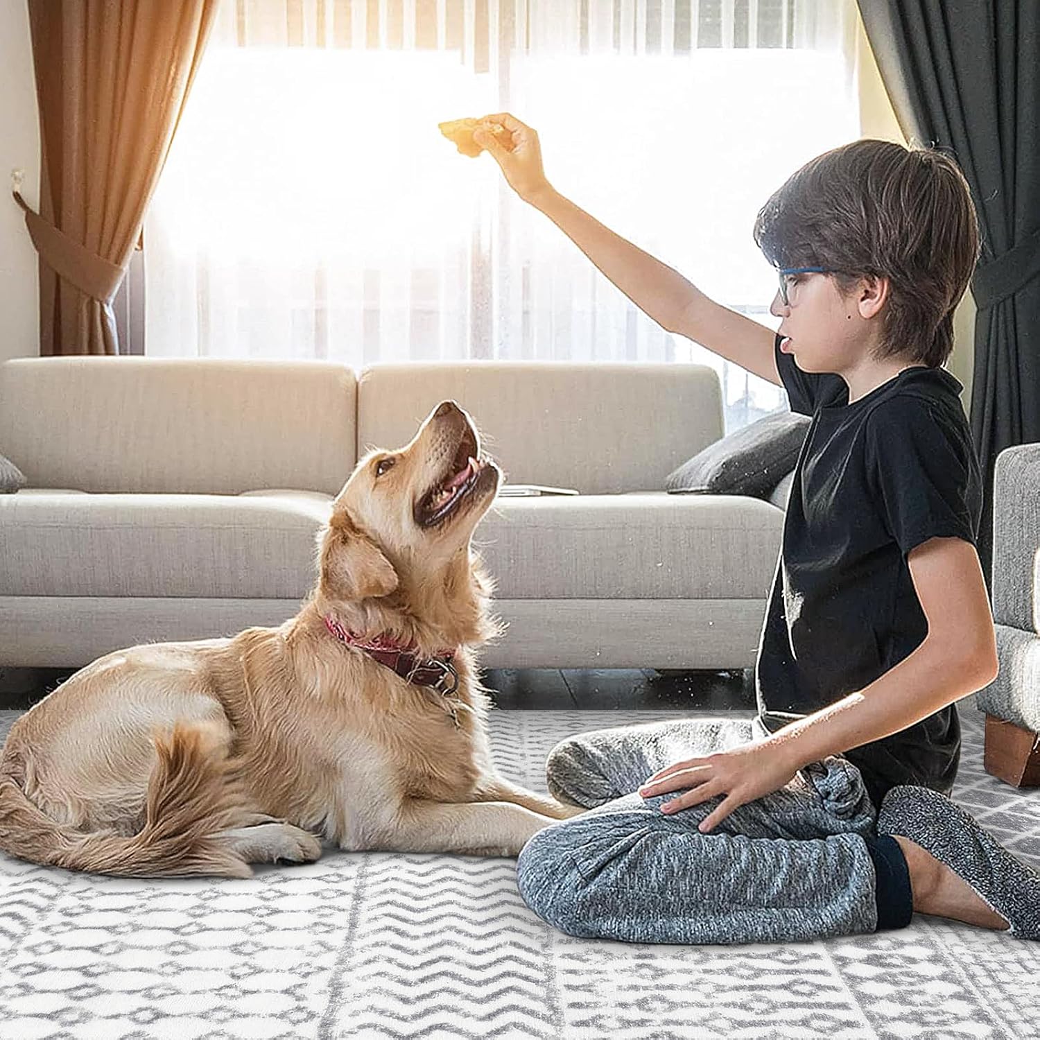- Soft & Non-Shedding Rug: Our area rugs is made of faux wool, soft cozy material is friendly to pets and children's skin.The low -pile gray rug features high density , pile almost non-shedding.The ultra soft touch protects your feet from the cold and hard floors, bringing comfort and warmth to your feet