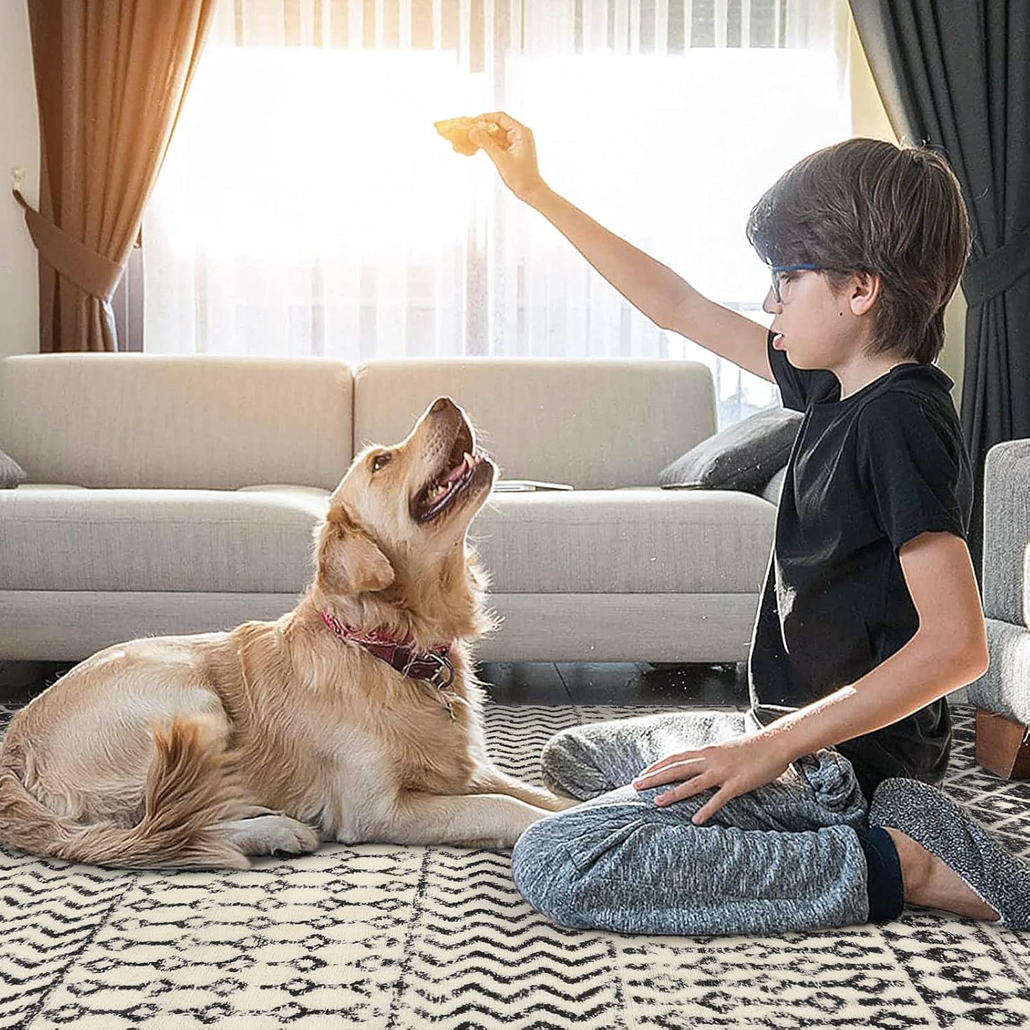- Easy to Clean Washable Rug: The black rug for living room is easy to care for and washable, Keep your rug looking fresh with daily cleaning using a vacuum.For a deeper clean, simply toss in the washing machine on a gentle cycle with cold water , air dry and not need add bleach