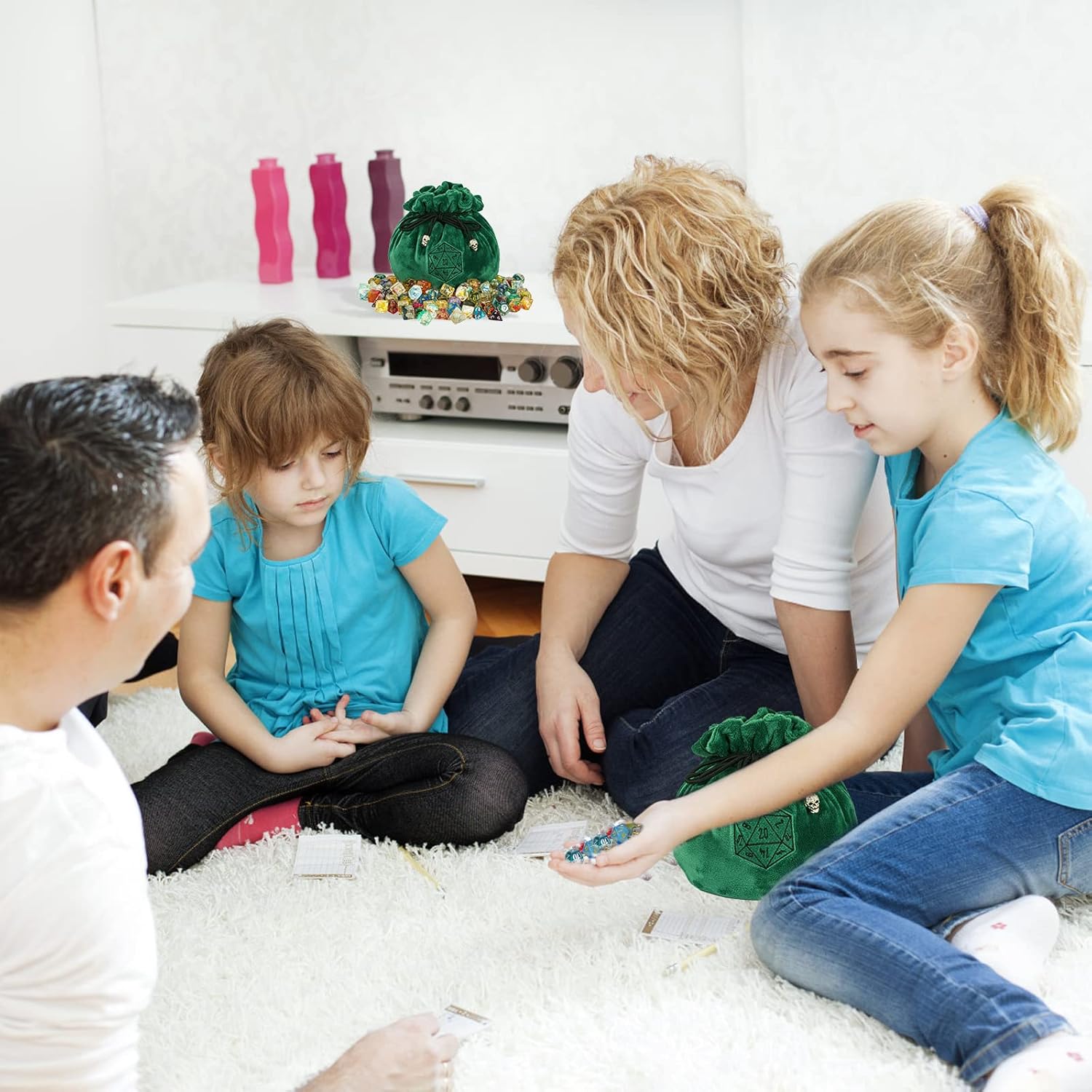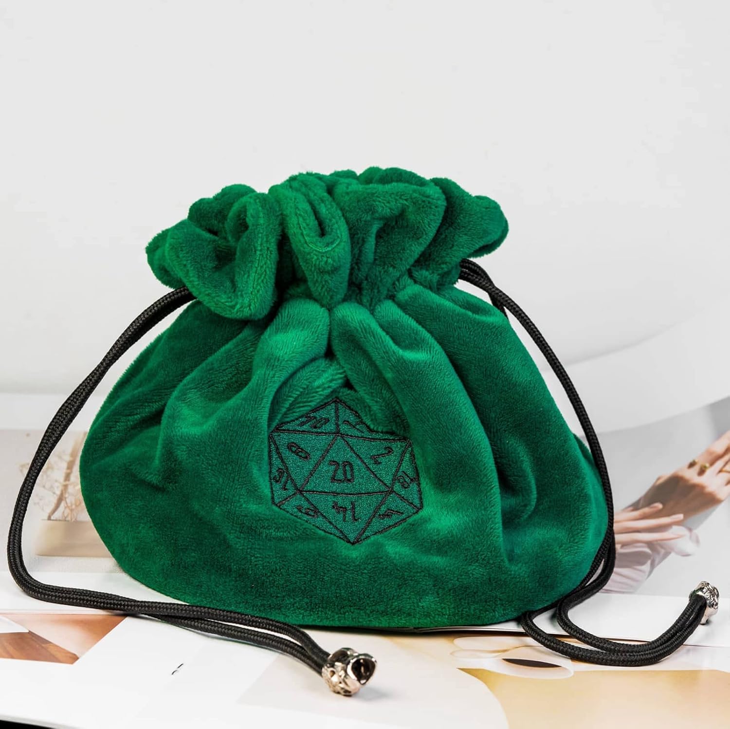 Large Dice Bags D&D with Pockets Green Storage Bag D20 Logo for DND RPG Game Dices - Capacity 200+ Dice