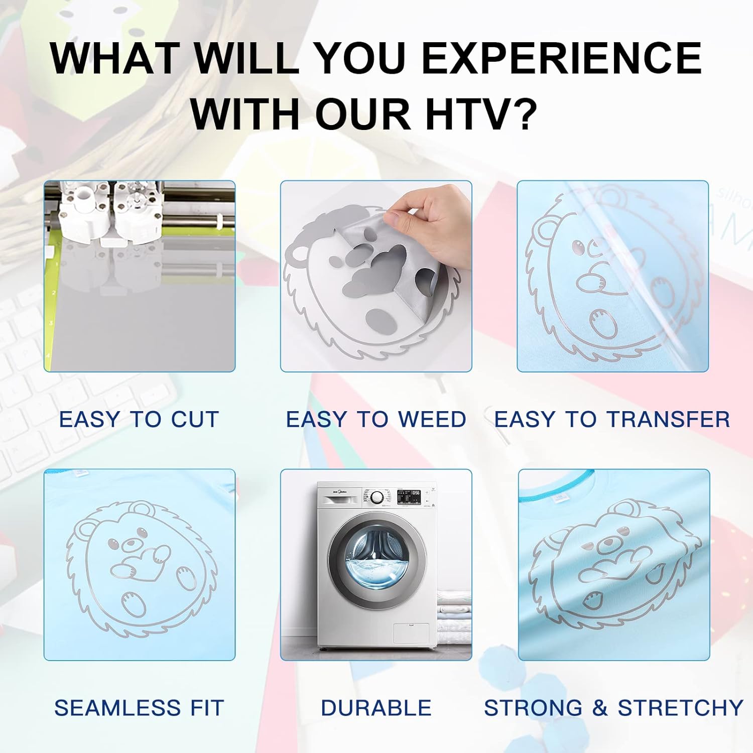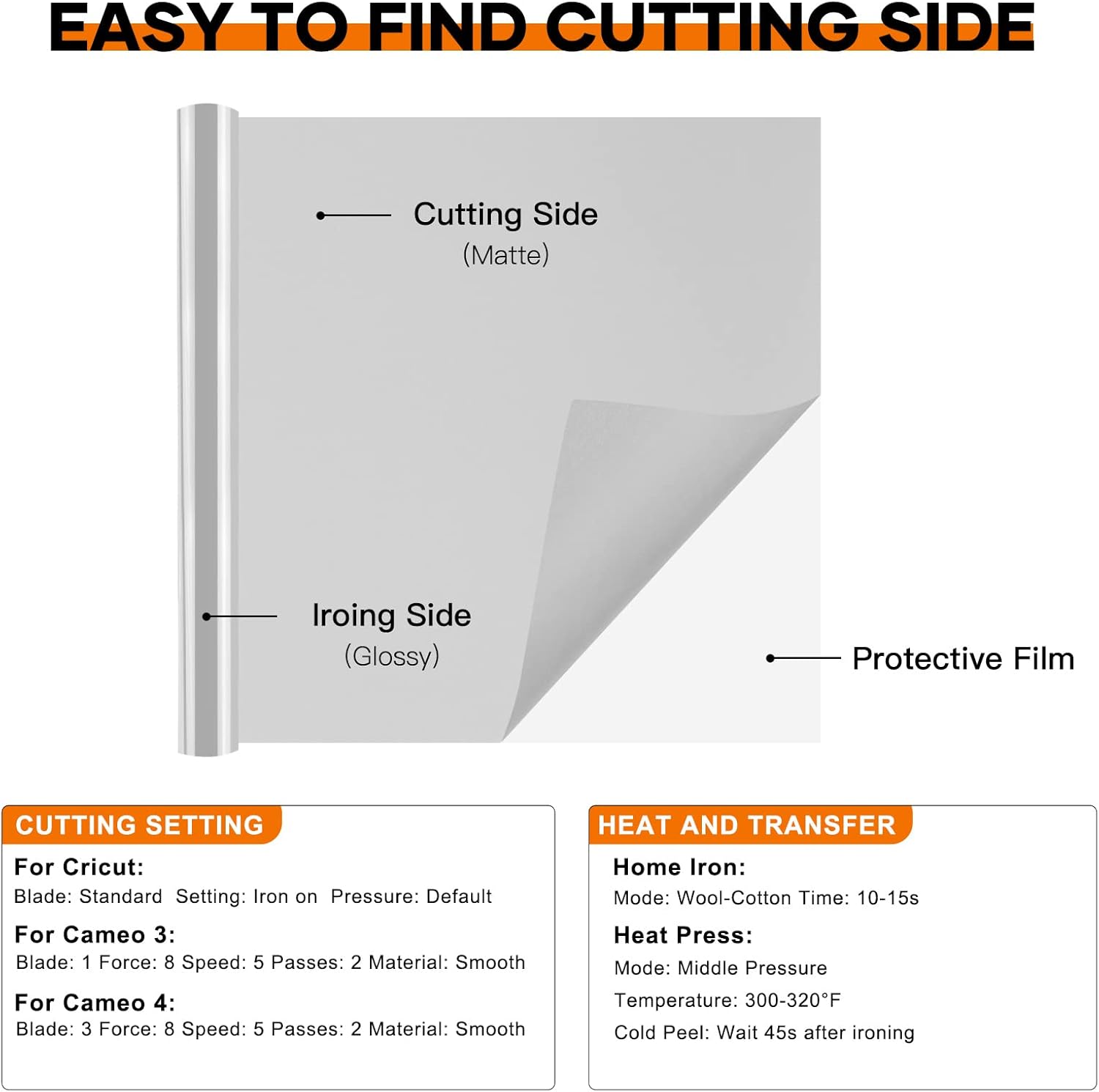 - 【12 INCH x 8 FEET】HTVRONT htv vinyl rolls are easy and convenient to cut into different sizes of art designs or logos or letters and perfect for 12''x12" and 12''x24" cutting mats. Our iron on vinyl are compatible for all cutter machines