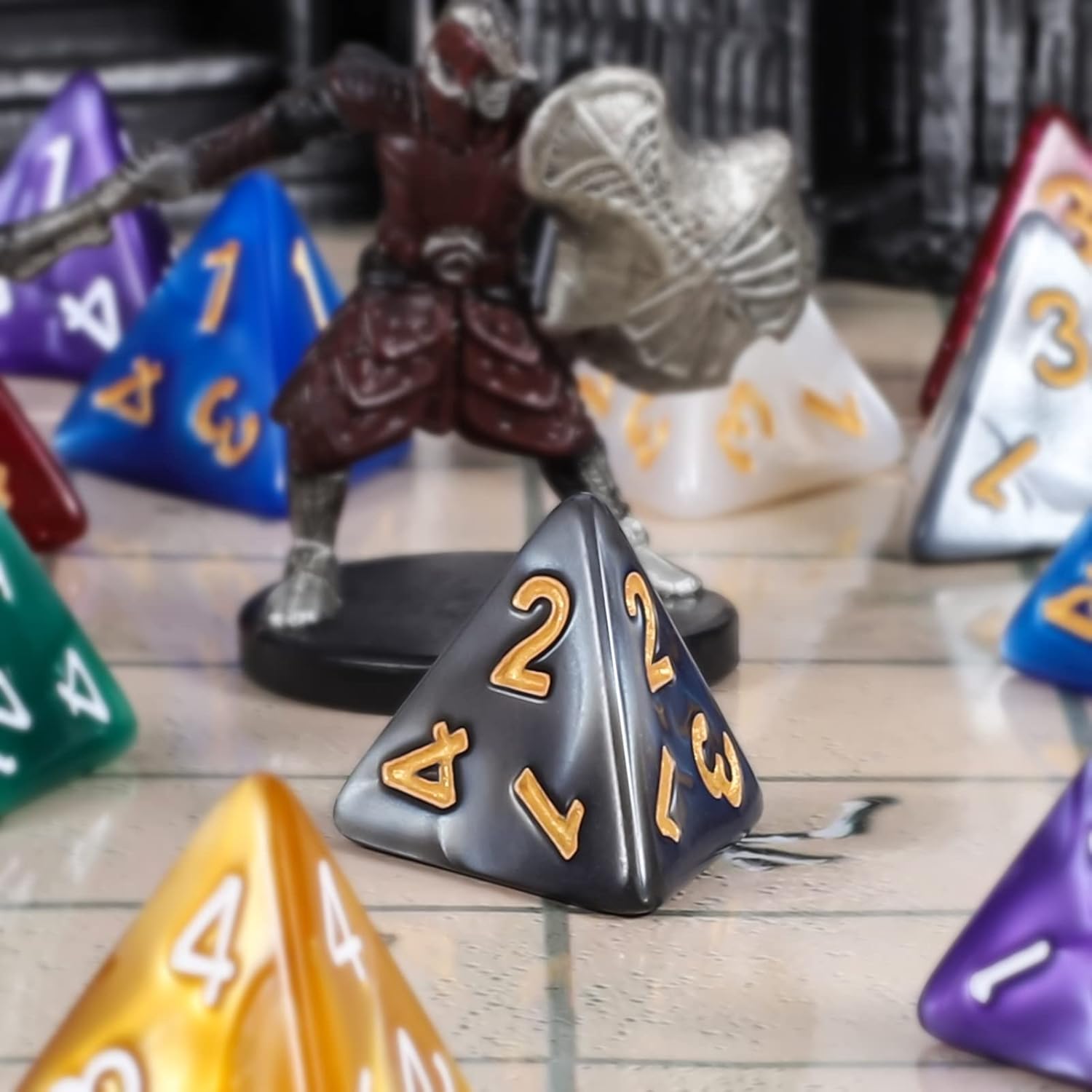- š² Easy to Read: These D4 Polyhedron dices have gold, black and white painted lettering which are as large as possible on each surface for easy reading.