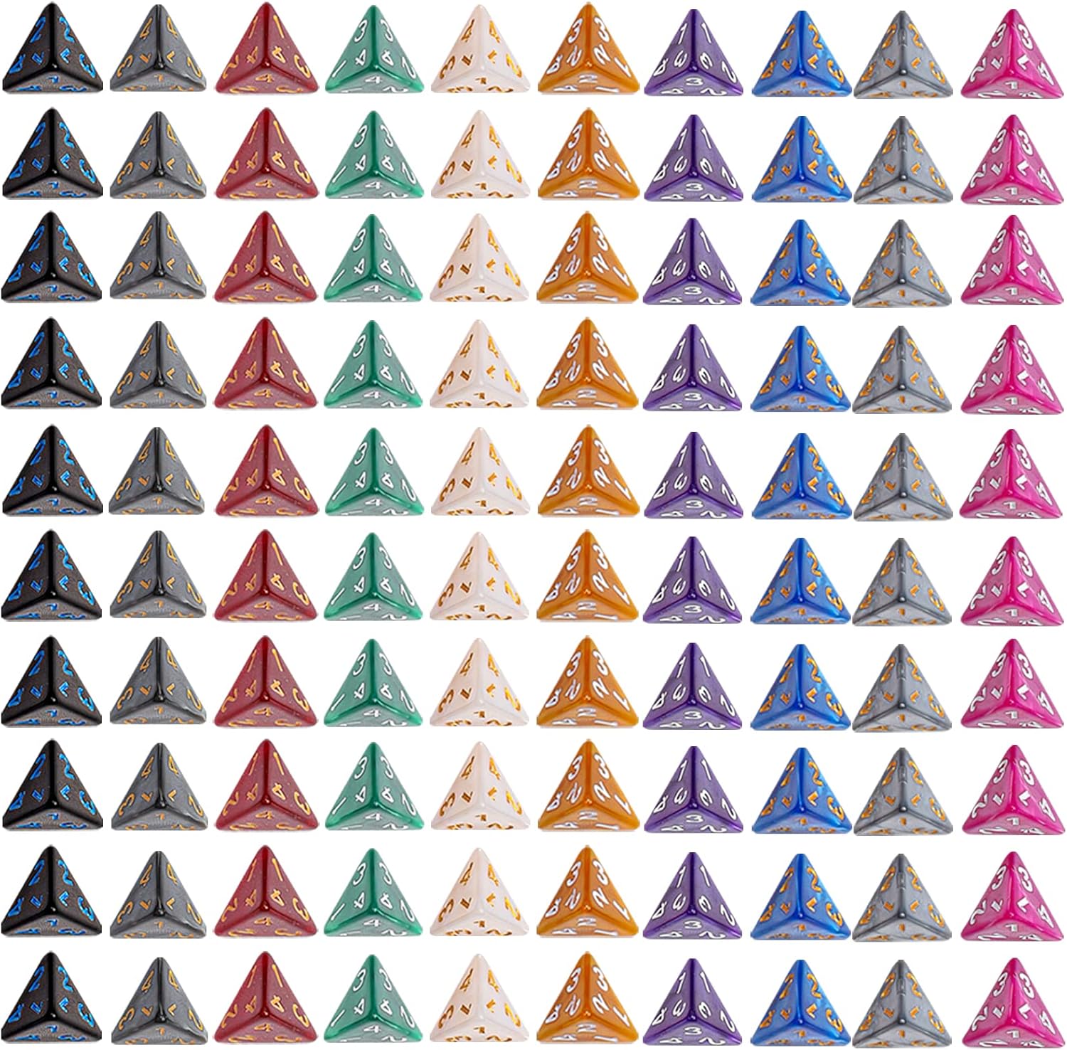 CiaraQ DND Polyhedral Dice (100pcs) with A Dice Bag Compatible with Dungeons and Dragons DND RPG MTG Role Playing Table Games (D4 dice, 10 colors-100 pcs)