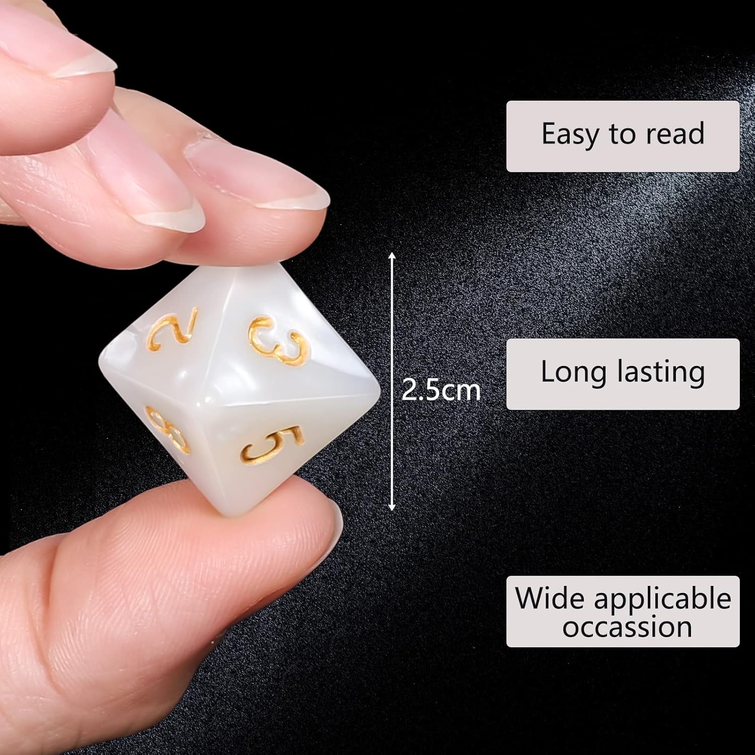 - š² Easy to Read: These D8 Polyhedron dices have gold, black and white painted lettering which are as large as possible on each surface for easy reading.