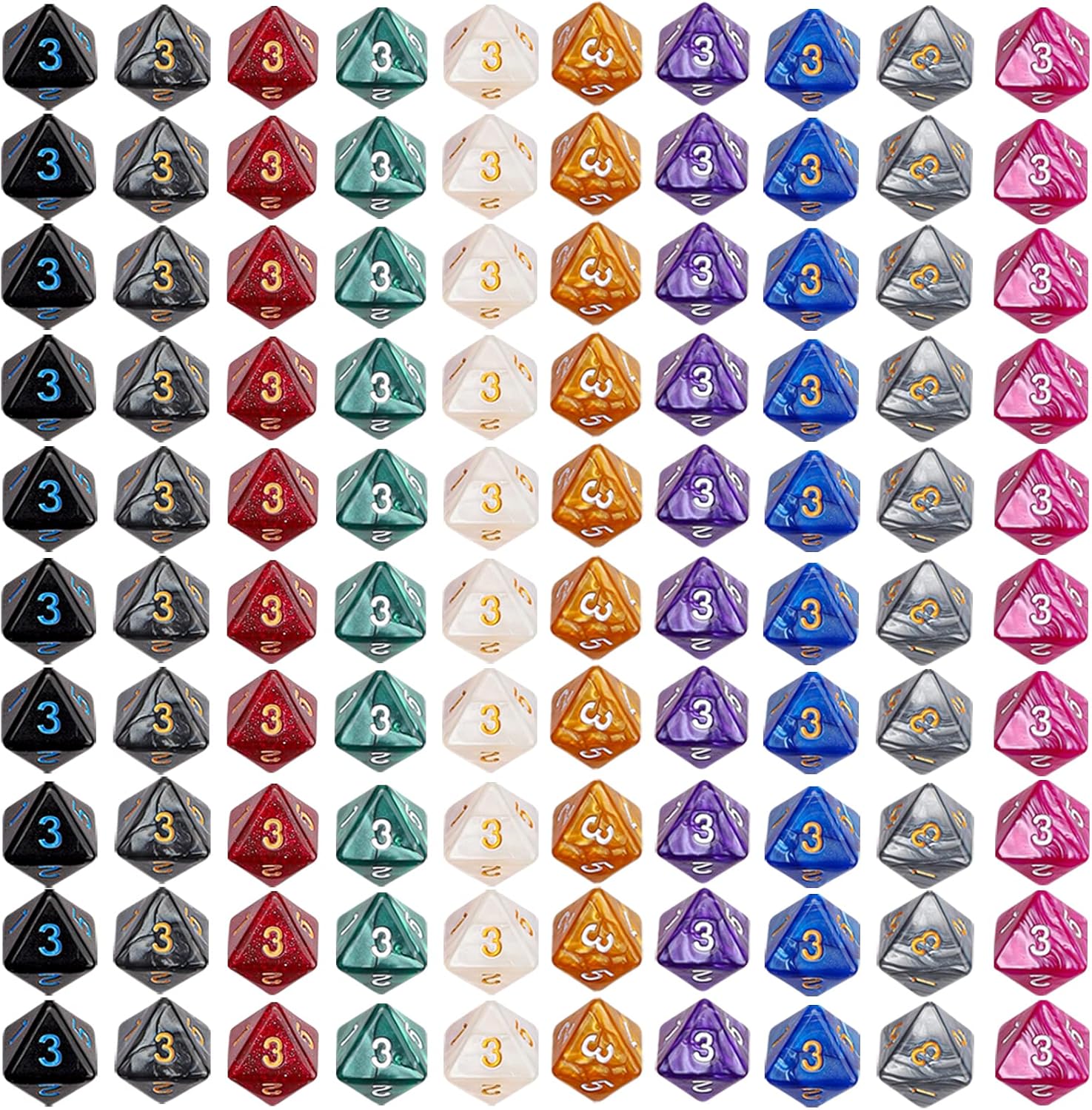 CiaraQ DND Polyhedral Dice (100pcs) with A Dice Bag Compatible with Dungeons and Dragons DND RPG MTG Role Playing Table Games (D8 dice, 10 colors-100 pcs)