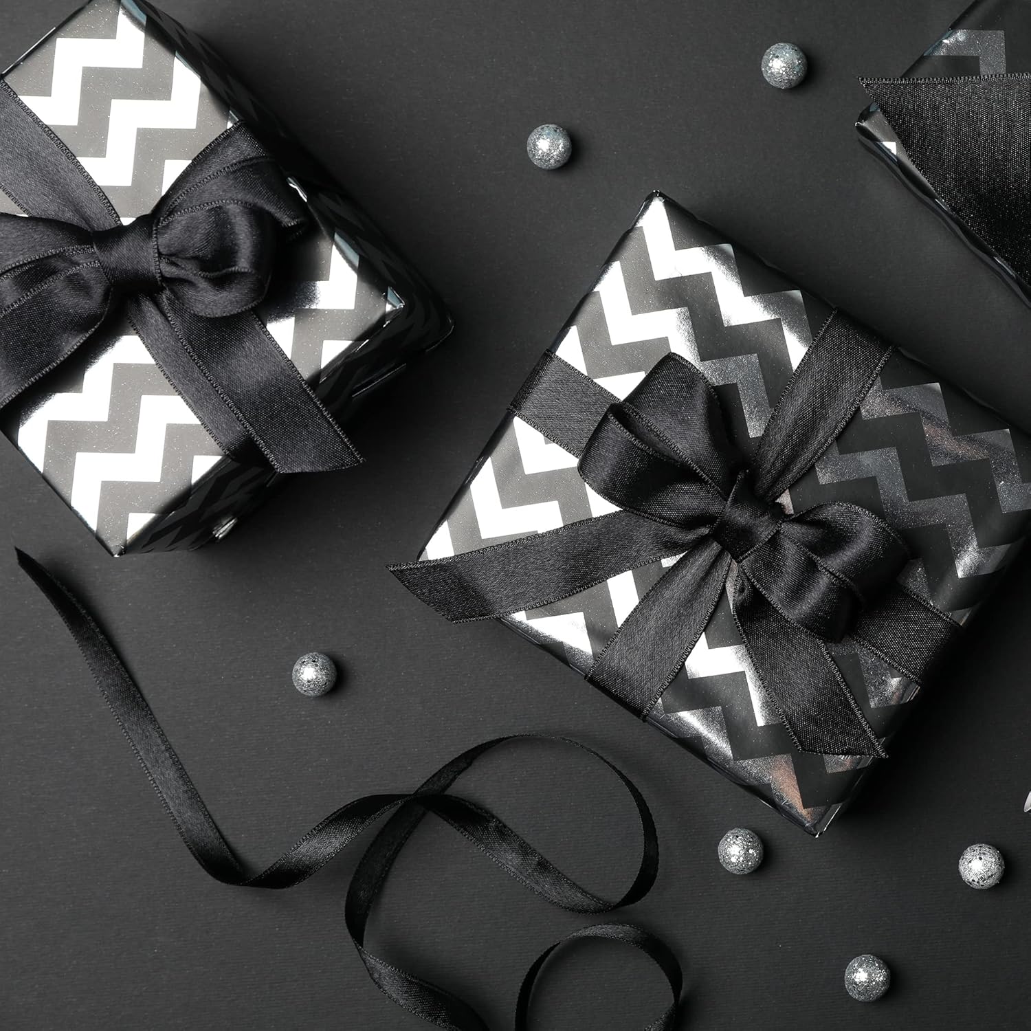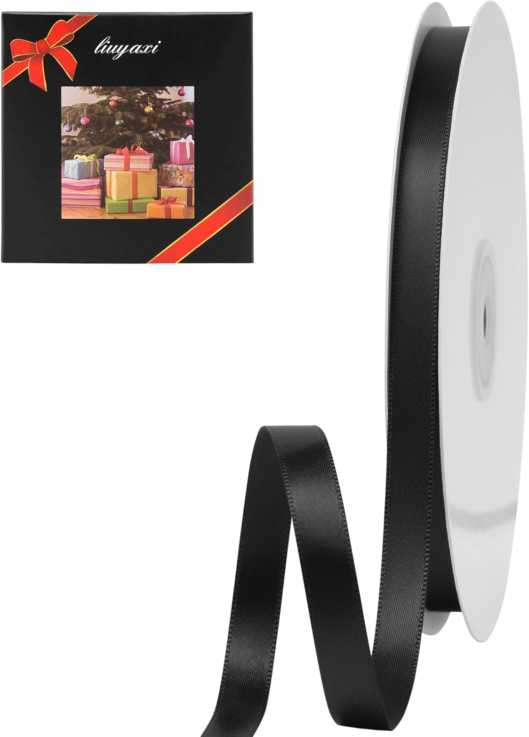 LIUYAXI Black Double Faced Satin Ribbon, 3/8" X Continuous 100 Yards, Ribbons Perfect for Gift Wrapping Bows Bouquet Wedding Decor DIY Craft and More