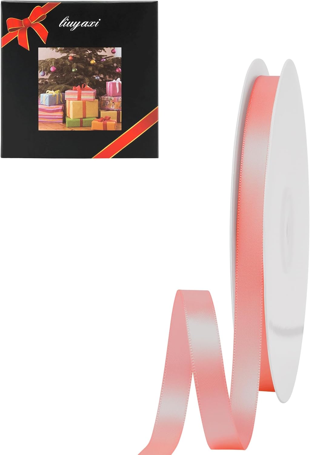 LIUYAXI Rose Gold Double Faced Satin Ribbon, 3/8" X Continuous 25 Yards, Ribbons Perfect for Gift Wrapping Bows Bouquet Wedding Decor DIY Craft and More