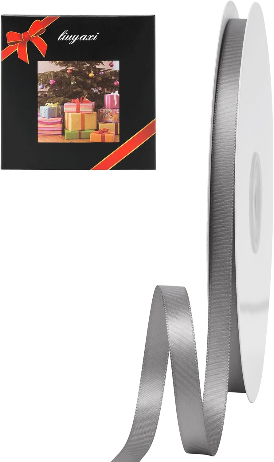 LIUYAXI Silver Double Faced Satin Ribbon, 1/4" X Continuous 50 Yards, Thin Ribbons Perfect for Gift Wrapping Wedding Invitation Card Hair Bows Tag Floral Arrangement DIY Craft