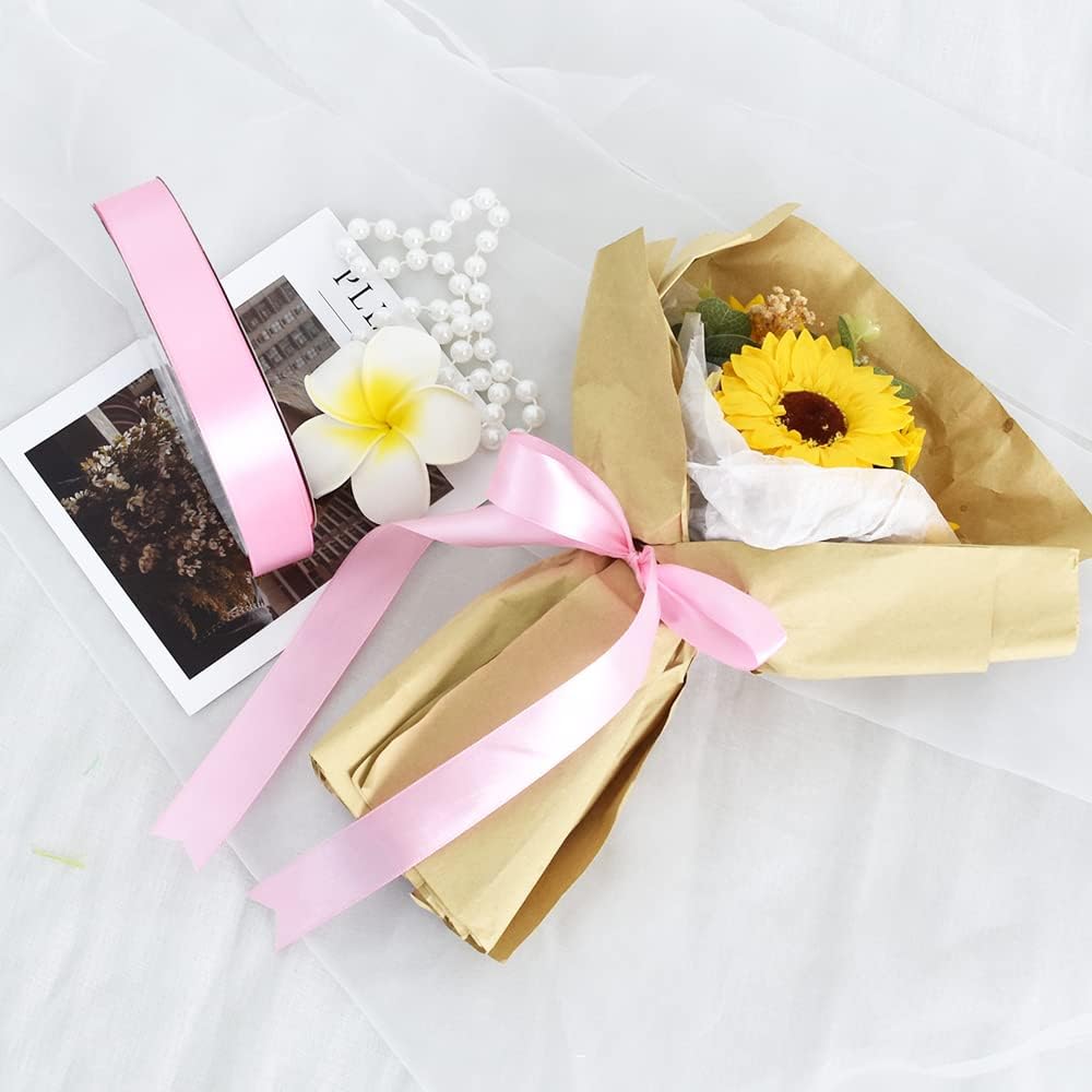 TONIFUL 1 Inch x 100yds Baby Pink Satin Ribbon, Thin Solid Color Satin Ribbon for Gift Wrapping, Crafts, Hair Bows Making, Wedding Party Decoration, Invitation Cards, Floral Bouquets, Christmas