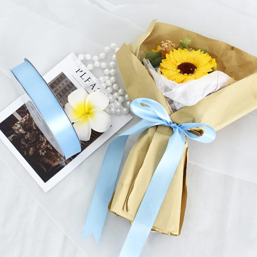 TONIFUL 1 Inch x 100yds Sky Blue Satin Ribbon, Thin Solid Color Satin Ribbon for Gift Wrapping, Crafts, Hair Bows Making, Wedding Party Decoration, Invitation Cards, Floral Bouquets
