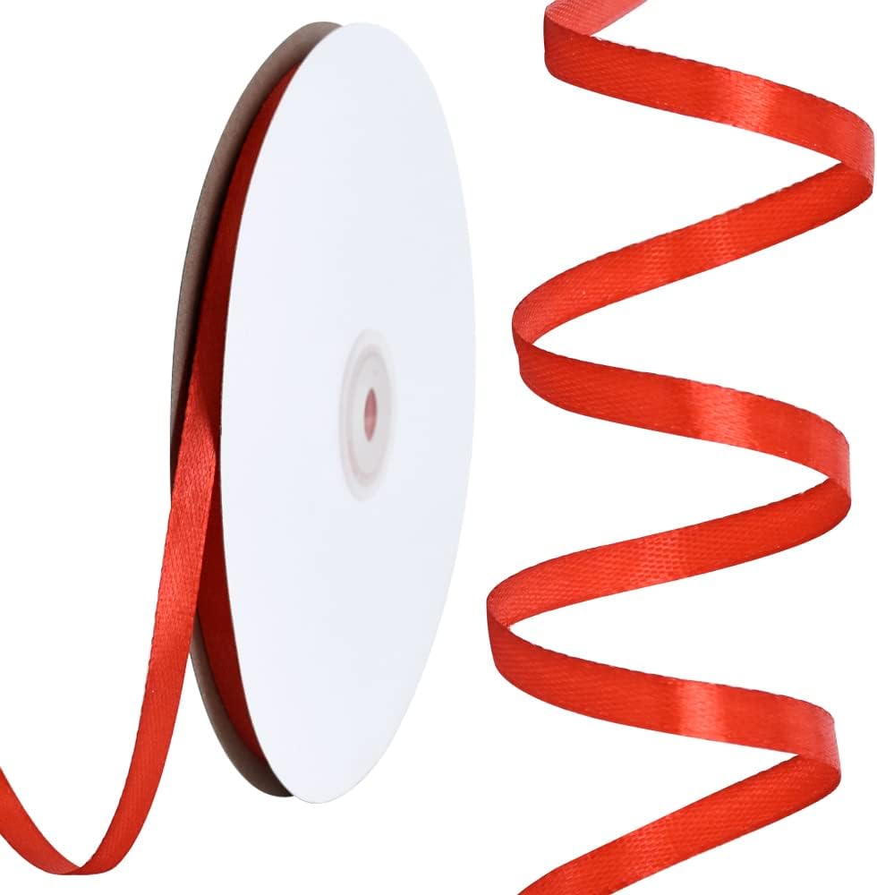 TONIFUL 1/4 Inch x 100yds Red Satin Ribbon, Thin Solid Color Satin Ribbon for Gift Wrapping, Crafts, Hair Bows Making, Wedding Party Decoration, Invitation Cards, Floral Bouquets,Christmas