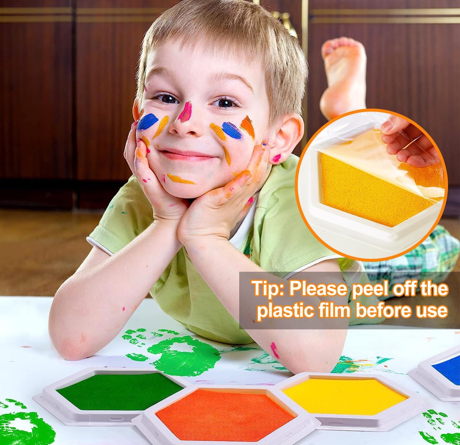 - 【Large Size】You will receive 8 pieces large hexagonal ink pads in 8 colors, including red, yellow, green, blue, purple, orange, dark blue, pink. Various colors can encourage children to use their imagination to creat a great finger painting. The ink pad is a 20.5*18cm (7*8in) hexagonal shape, large enough to press the entire palm of a child's hand into.