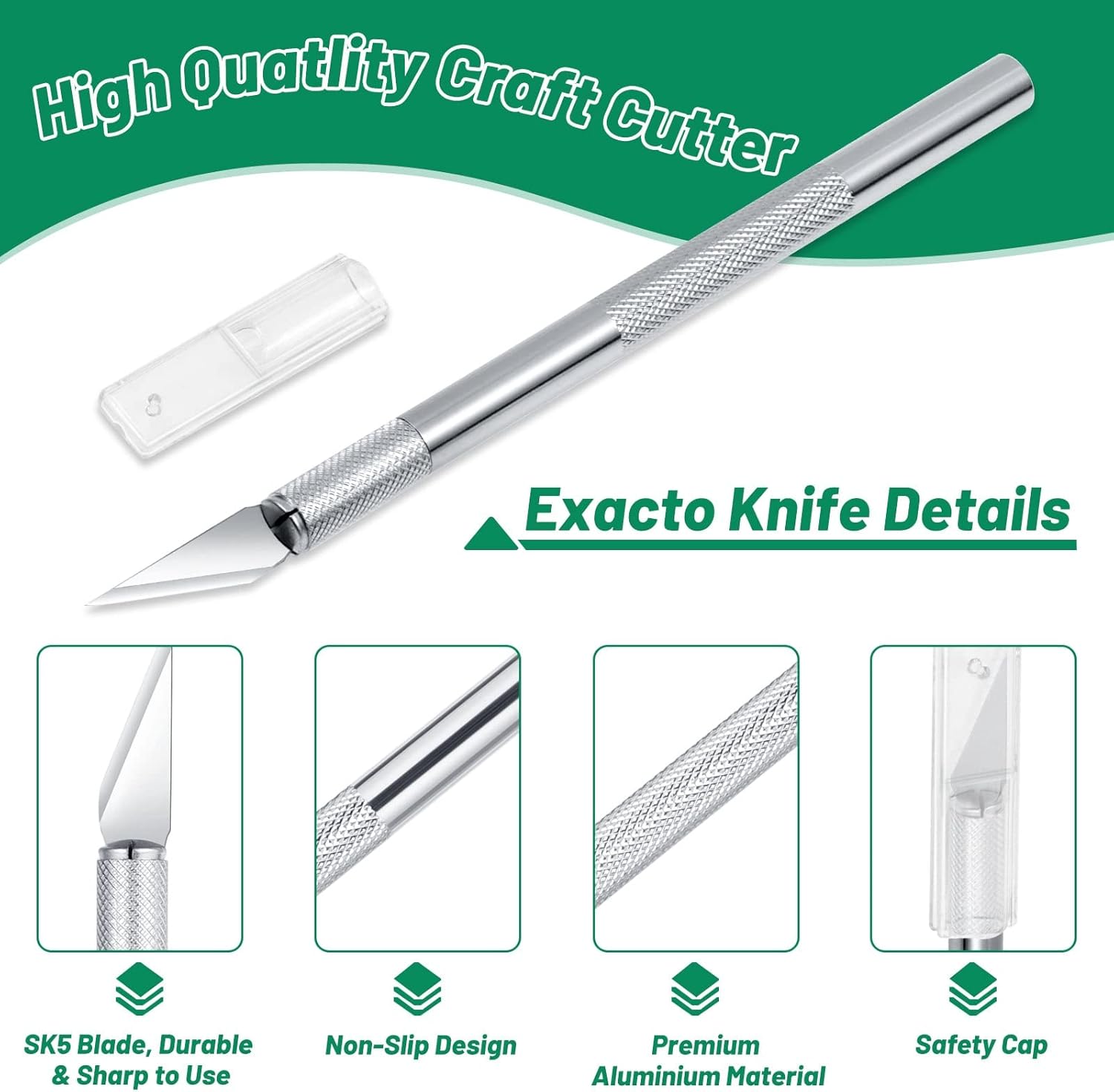 - 【SK5 Precision Exacto Blades】This hobby knife is consist of anti-skidding aluminum handle, #11 precision blade and safety cap. Also comes with 30pcs spare SK-5 steel blades. The SK-5 high carbon steel blades are sharp and good for precise cutting without tears and ripping the papers and projects