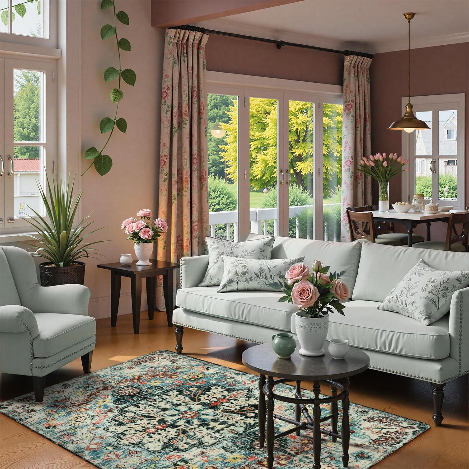 Lahome Bohemian Floral Medallion Area Rug - 4x6 Teal Soft Bedroom Rug Washable Entryway Mat, Non Slip Pet Friendly Indoor Floor Accent Carpet for Bathroom Mudroom Basement Studio
