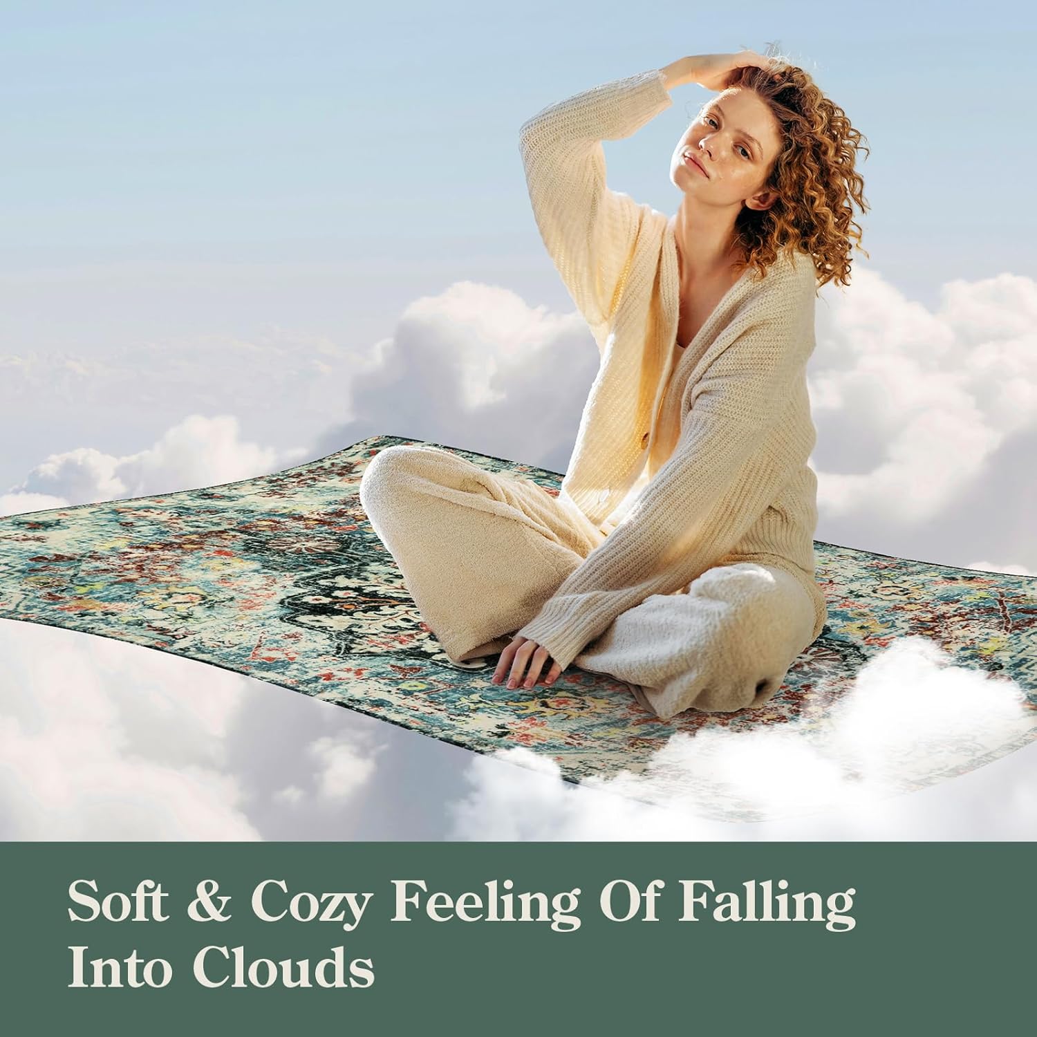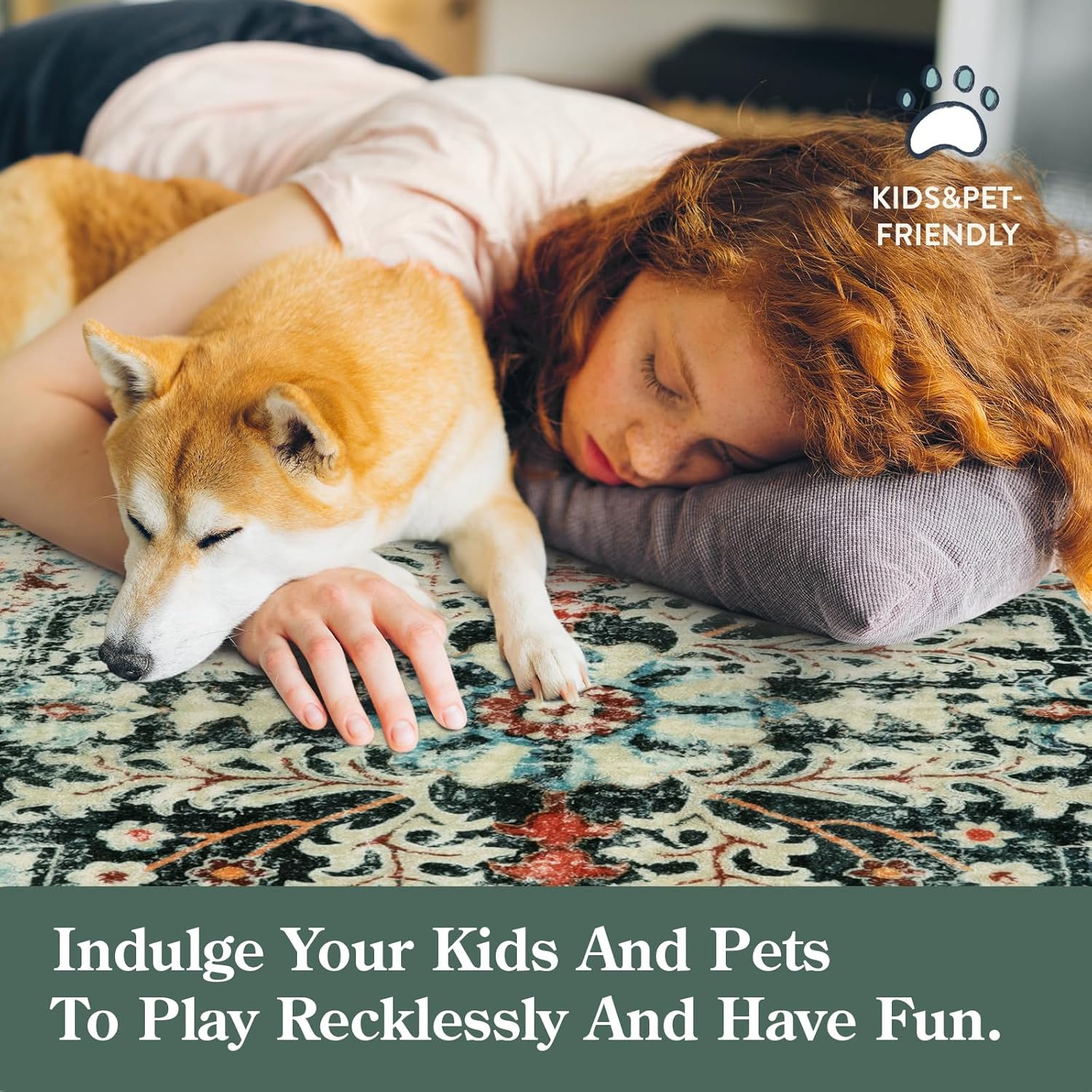 - [Exclusive Design Accent Rug] - This oriental area rug brings a vibrant color scheme and bohemian floral style print to your space. It mainly features a teal, yellow, red design patterns, has a mystical quality that feels right out of a fairy tale, with purposeful distressing to add vintage appeal to your space.