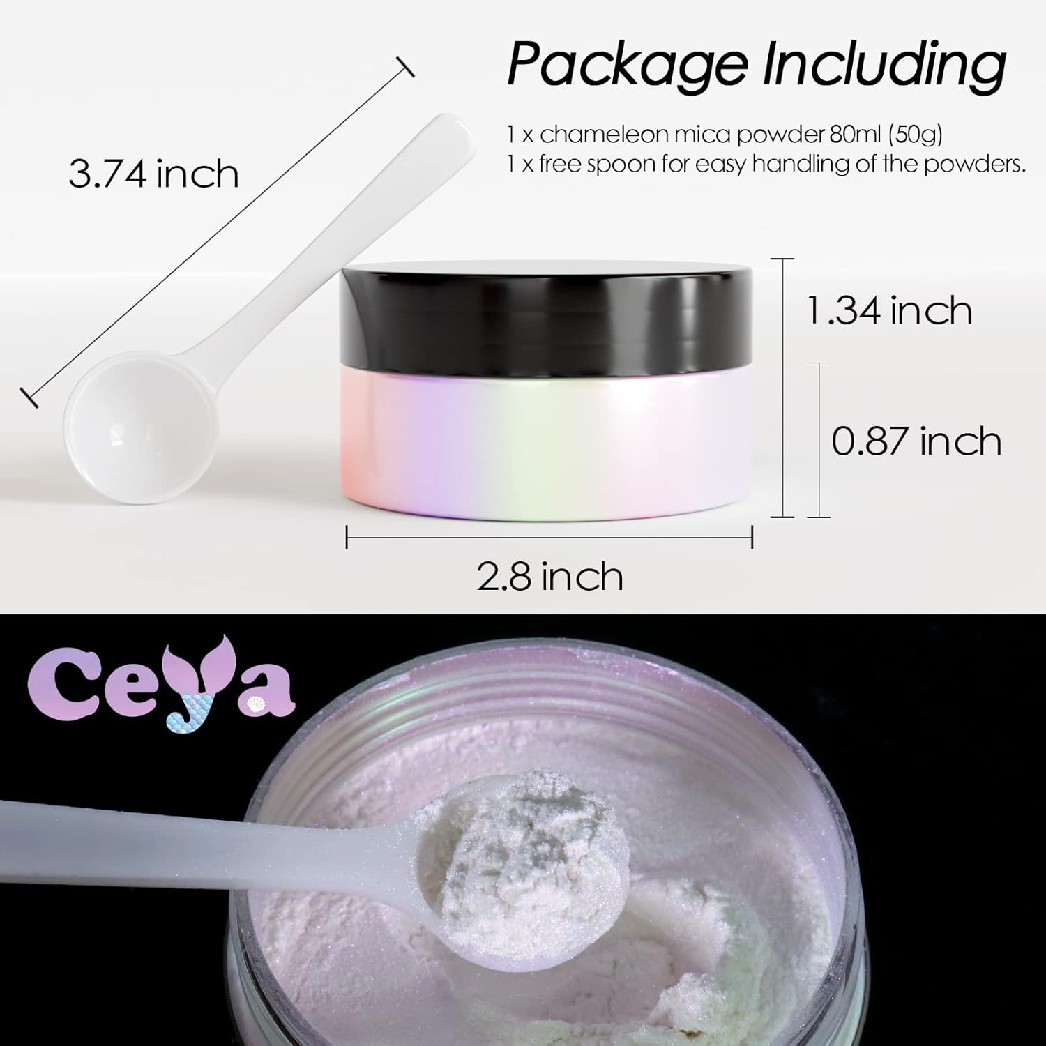 Ceya Chameleon Mica Powder, 1.8oz/ 50g Wonder Dream Chrome Nail Powder, Cosmetic Grade Pearlescent Effect Color Shift Pigment for Epoxy Resin, Makeup, Nail Polish, Soap Dye, Candle Making, Slime