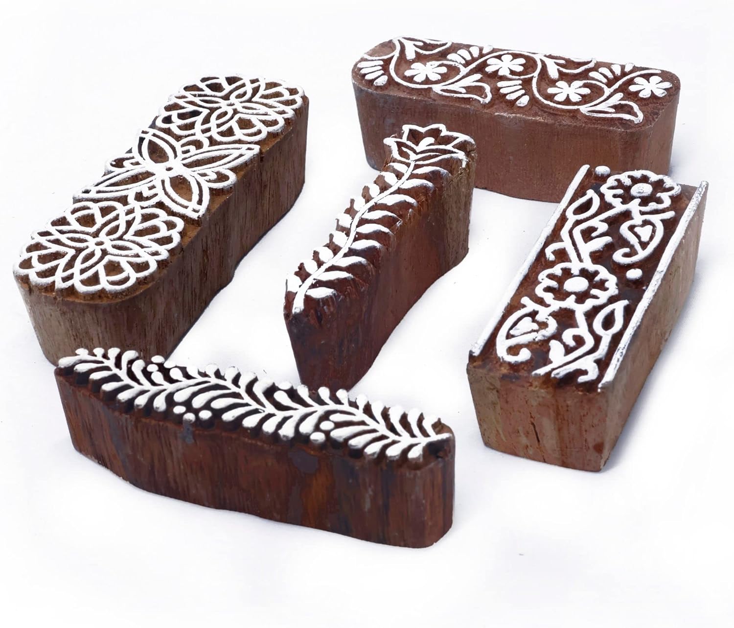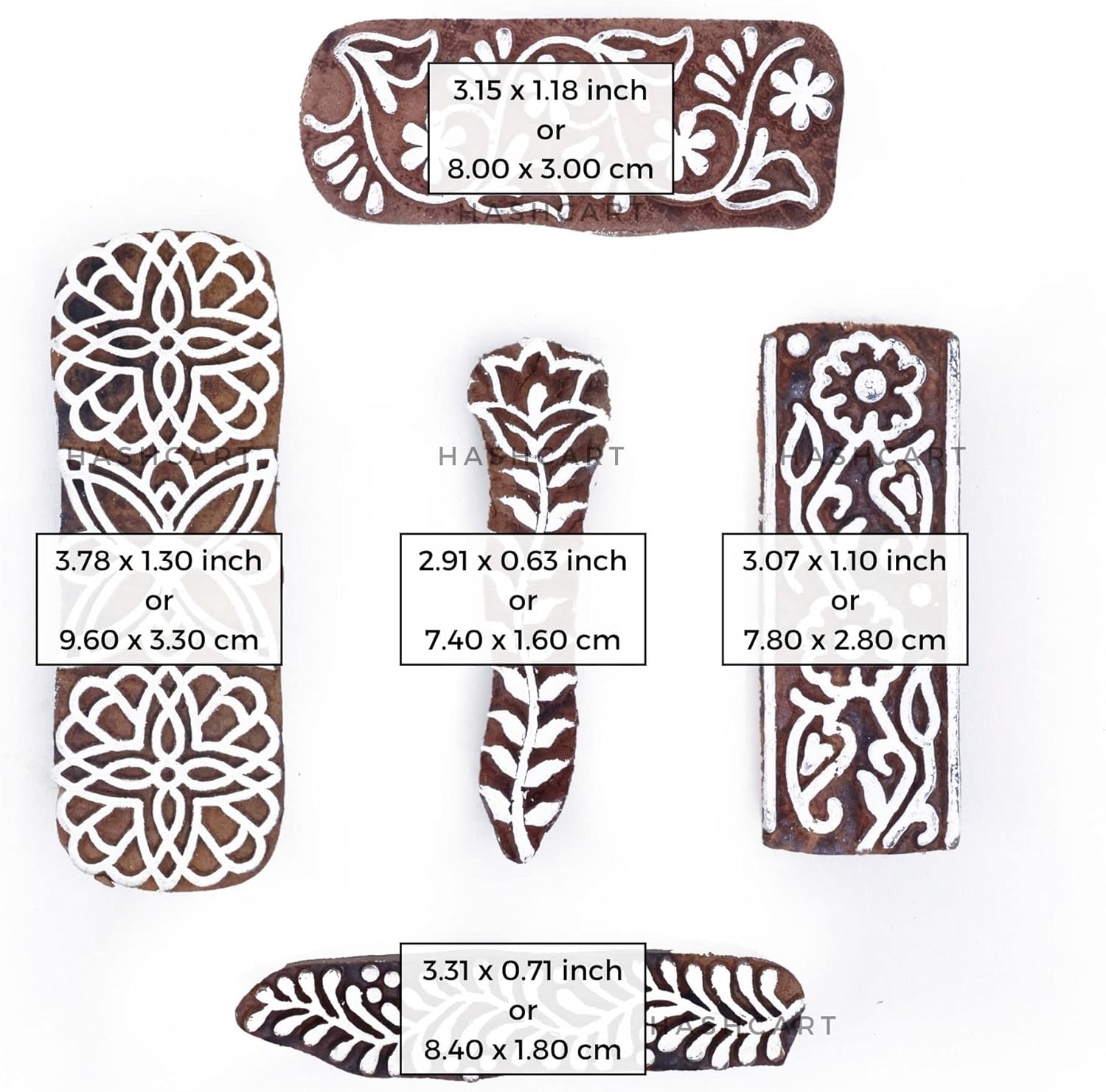 Wooden Stamps for Block Printing | Set of 5 | Border Shaped Wooden Finger Stamps, Tattoo Handcarved Indian Textile Printing Blocks for Henna Mehndi Clay Pottery Hashcart®