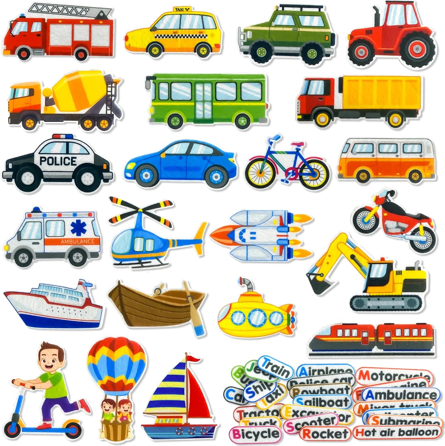 - Transportation Vehicles Learning: 24 transportation vehicles felt, 24 words felt piece for young children
