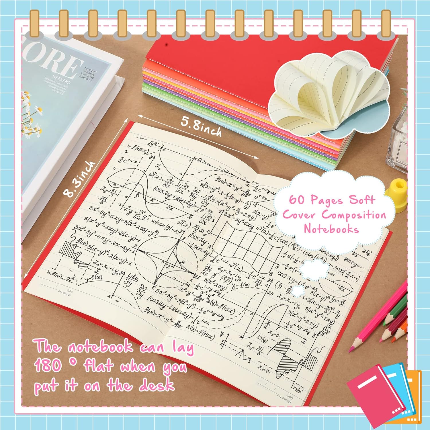 Handepo 100 Pack Composition Notebooks A5/A6 Ruled Lined Composition Kraft Notebooks Bulk Soft Cover Journals Travel Diary Memo for Students Classroom Office Supplies(A5,Fresh Color)