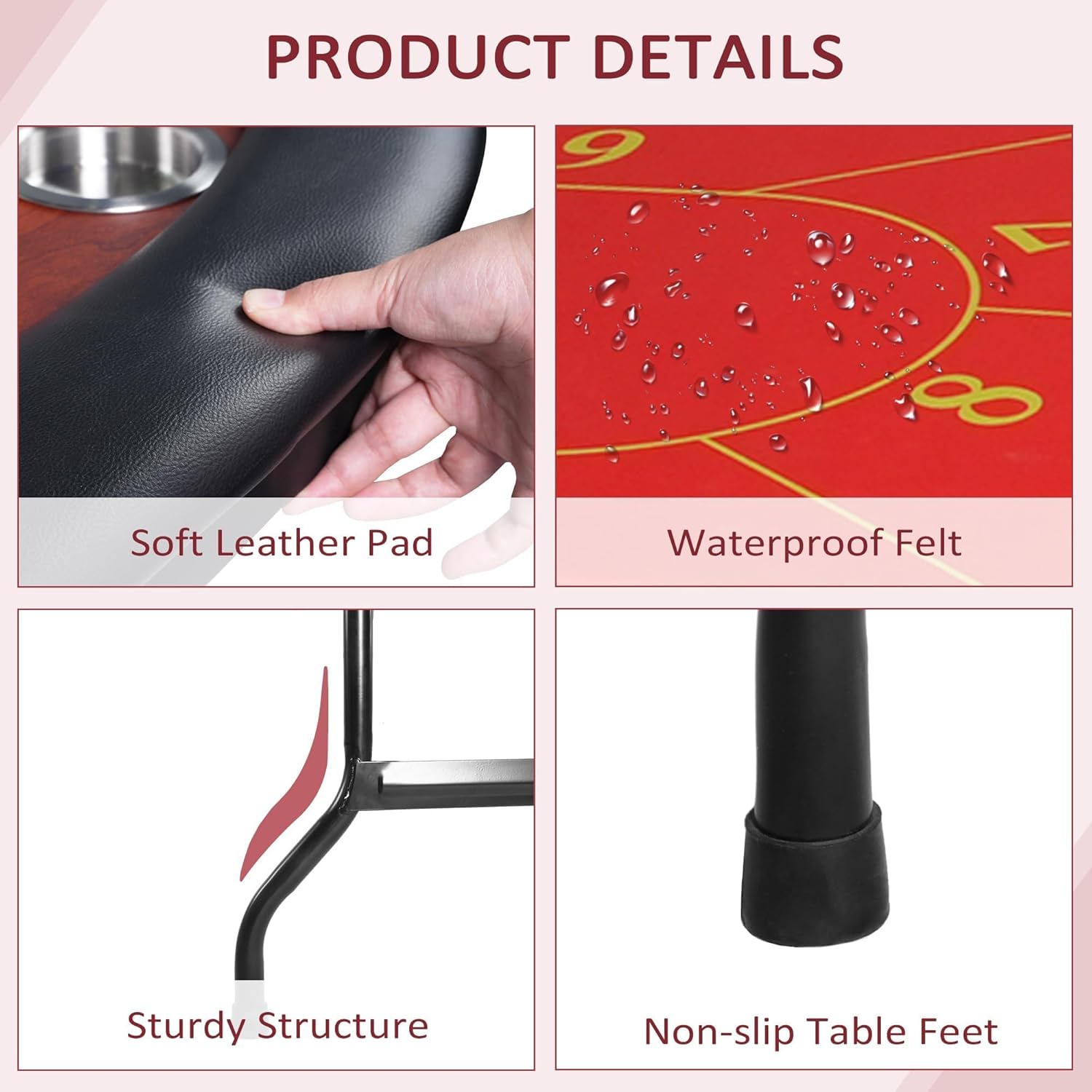- SOFT SURFACE & THICKENED EDGE: Equipped with traditional soft felt covering which providing proper friction, the poker table top can prevent excessive friction of the card and movement of the tablecloth. The thickened edge allows it to provide comfortable support and contact when you lean on the table.