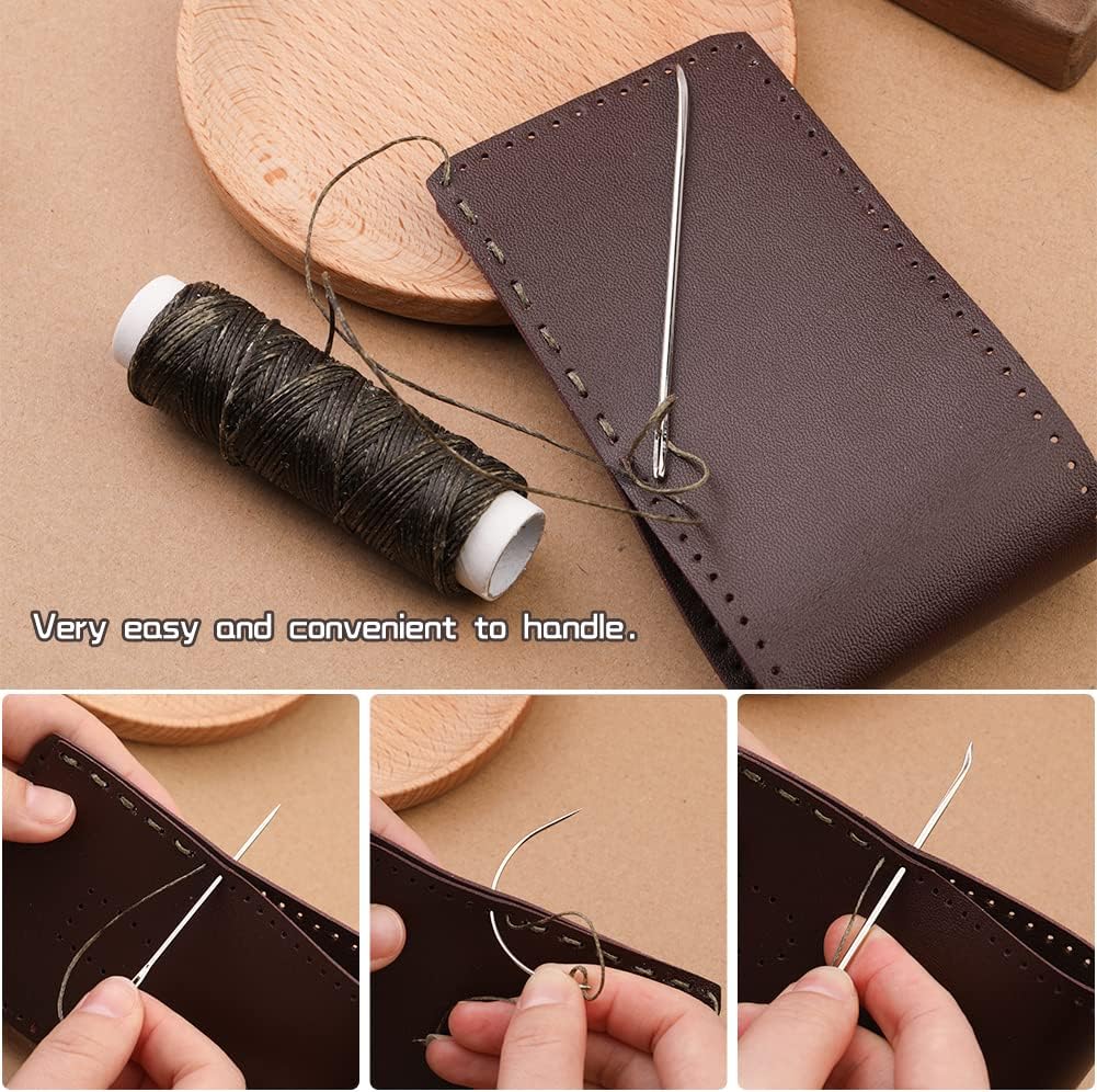 - Package Includes: This leather repair kit includes 1 pcs 32 yards sewing waxed thread and 7 pcs different shapes leather hand sewing needles, upholstery needles and threads very great for canvas, leather, carpets, sails, sacks, etc.