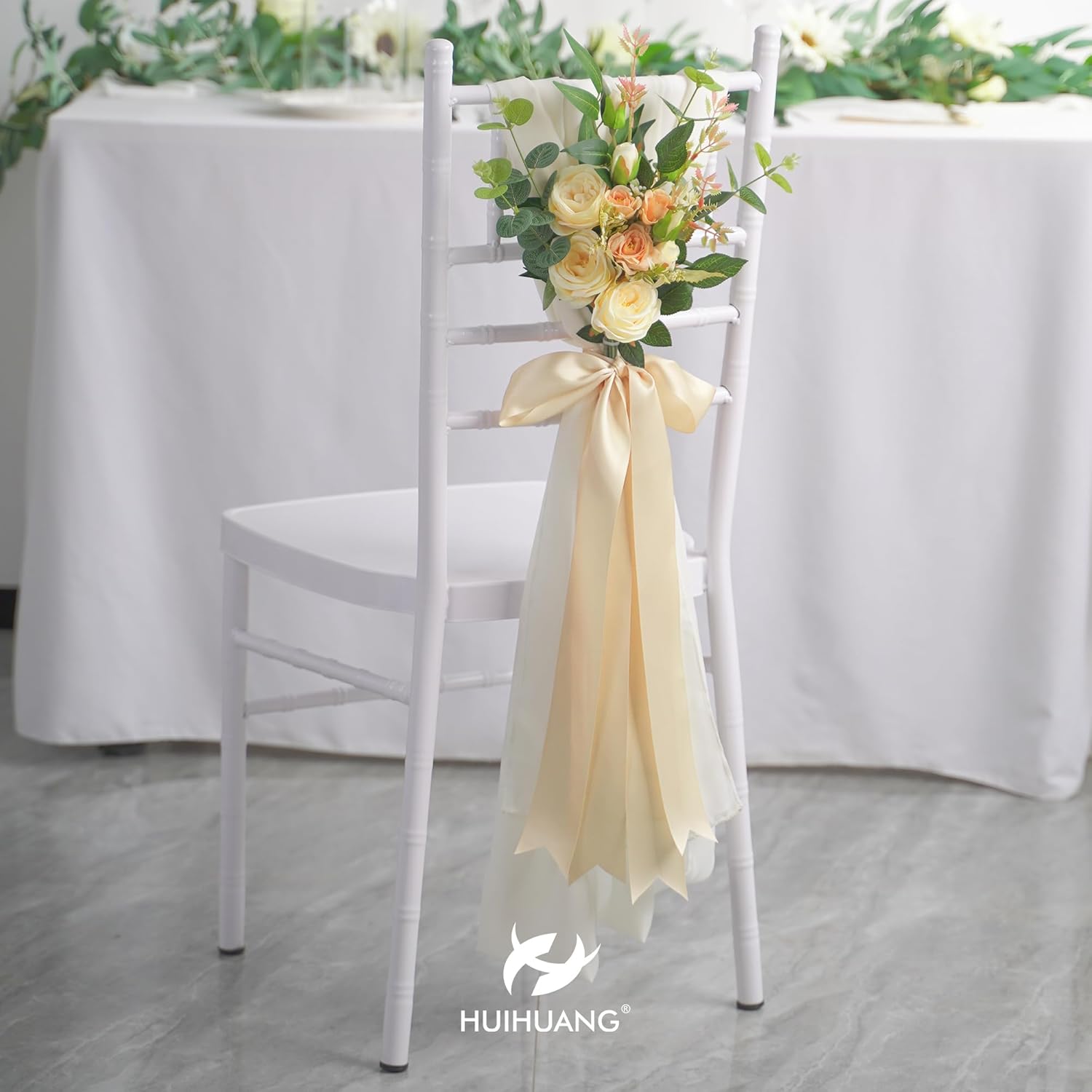 HUIHUANG Champagne Gold Ribbon 2 inch Double-Faced Champagne Satin Ribbon for Wedding Flower Bouquet, Dress Chair Sashes, Invitations Card, Gift Wrapping, Bows, Crafts, Holiday Decor -25 Yards/Roll