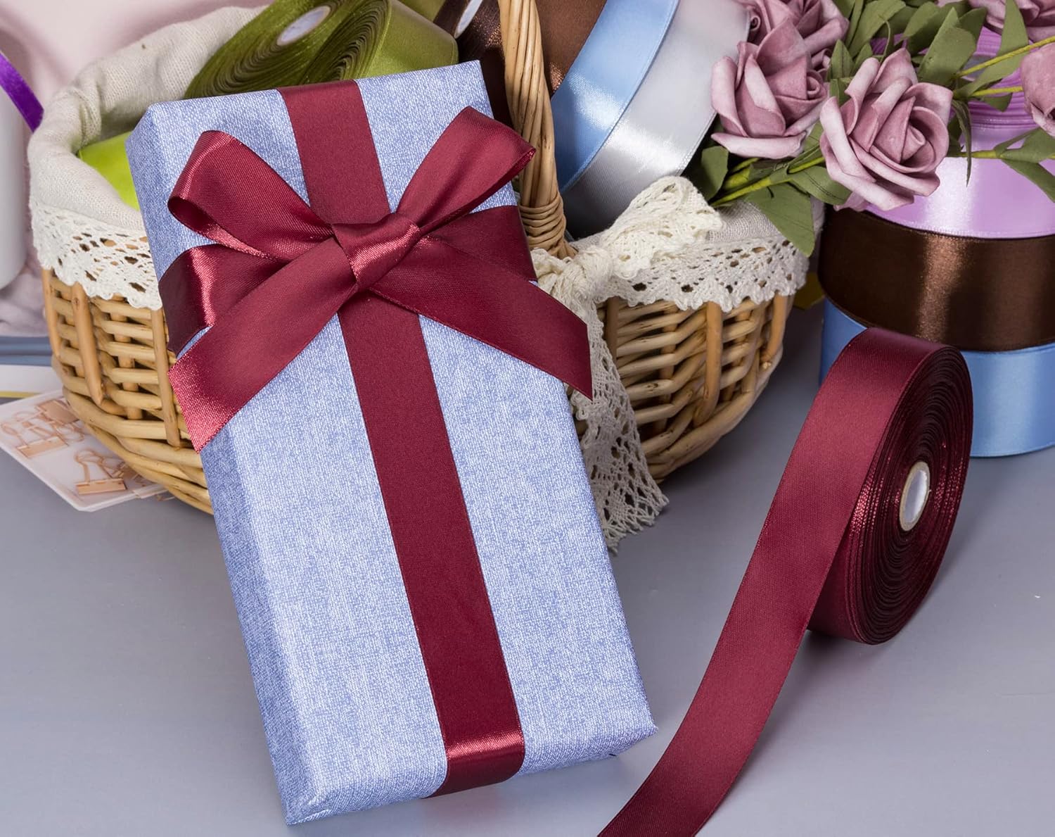 1 Inch Wine Red Solid Satin Ribbon, 50 Yards Craft Fabric Ribbon for Gift Wrapping Floral Bouquets Wedding Party Decoration